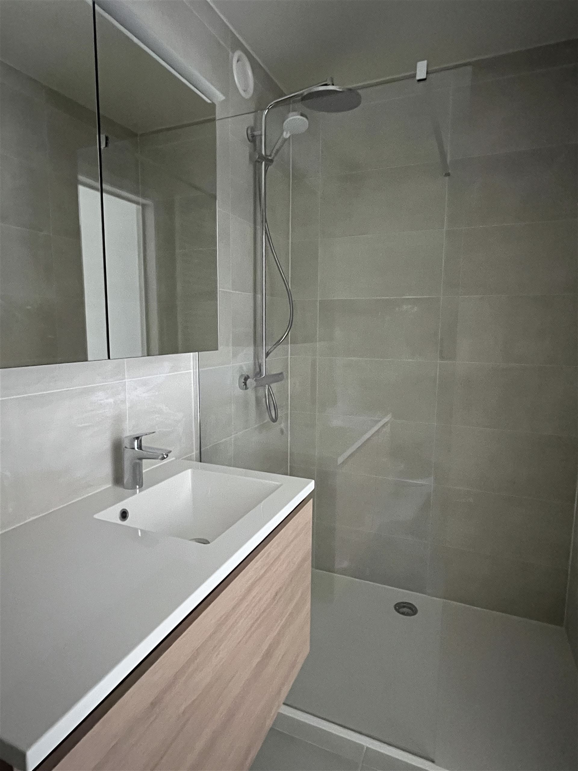 Composition : hall d'entrée, living avec cuisine ouverte, salle de bains avec douche et toilette, toilette séparée, débarras, 1 chambre à coucher, belle terrasse et cave privée.