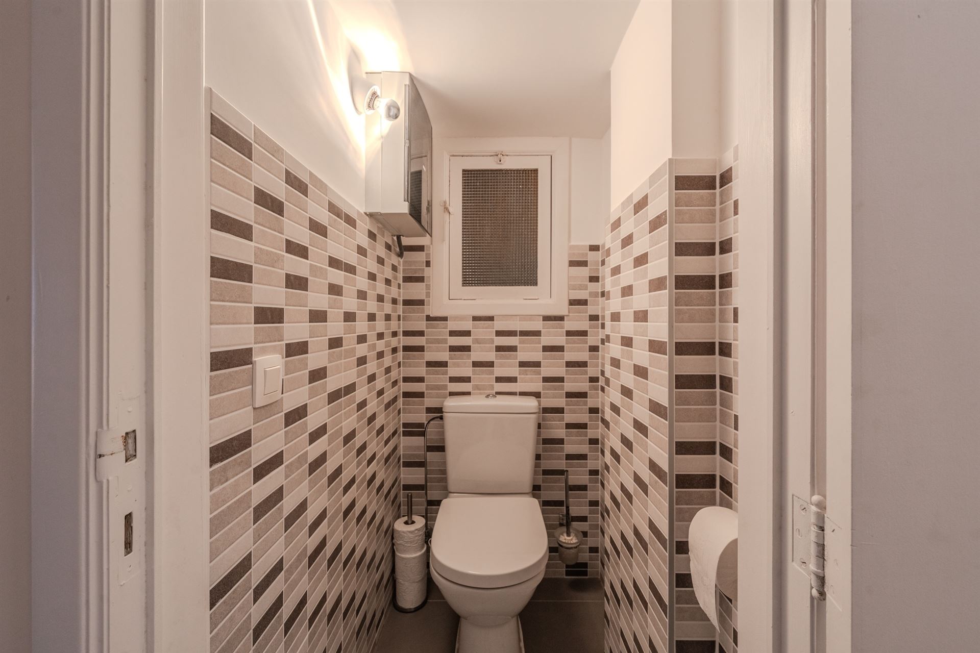 De badkamer beschikt over alle benodigde faciliteiten en is modern afgewerkt met aandacht voor detail.