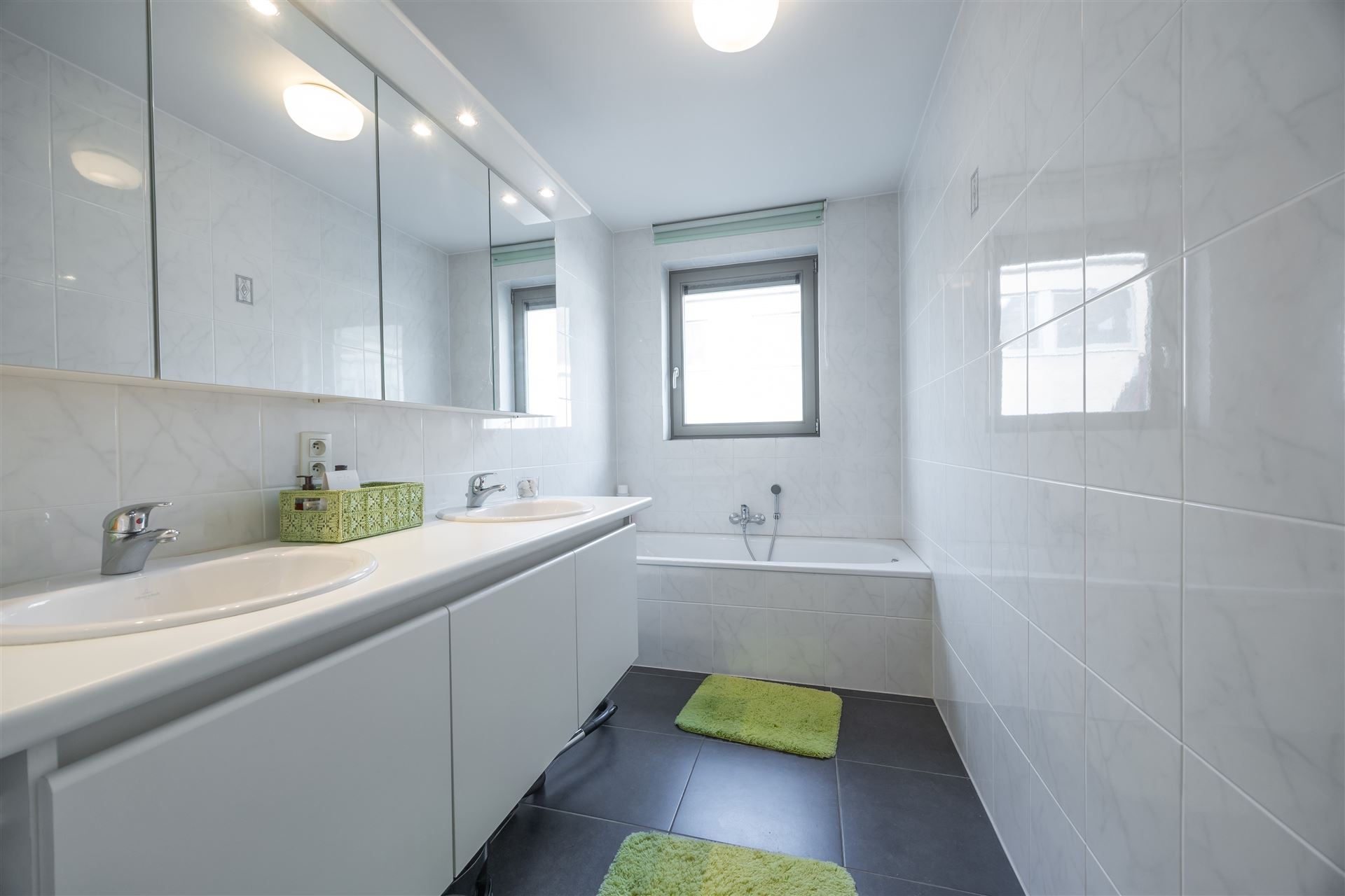 Twee badkamers, één met een douche en de tweede badkamer heeft een ligbad met dubbele lavabo.Het toilet is apart. Er is een berging met een aansluiting voor wasmachine. Bovendien is er de mogelijkheid tot een eigen gelijkvloerse garage met automatische poort, wat extra comfort en gemak biedt.Deze is op het Oudstrijdersplein gelegen en kan aangekocht worden aan 80.000 euro
