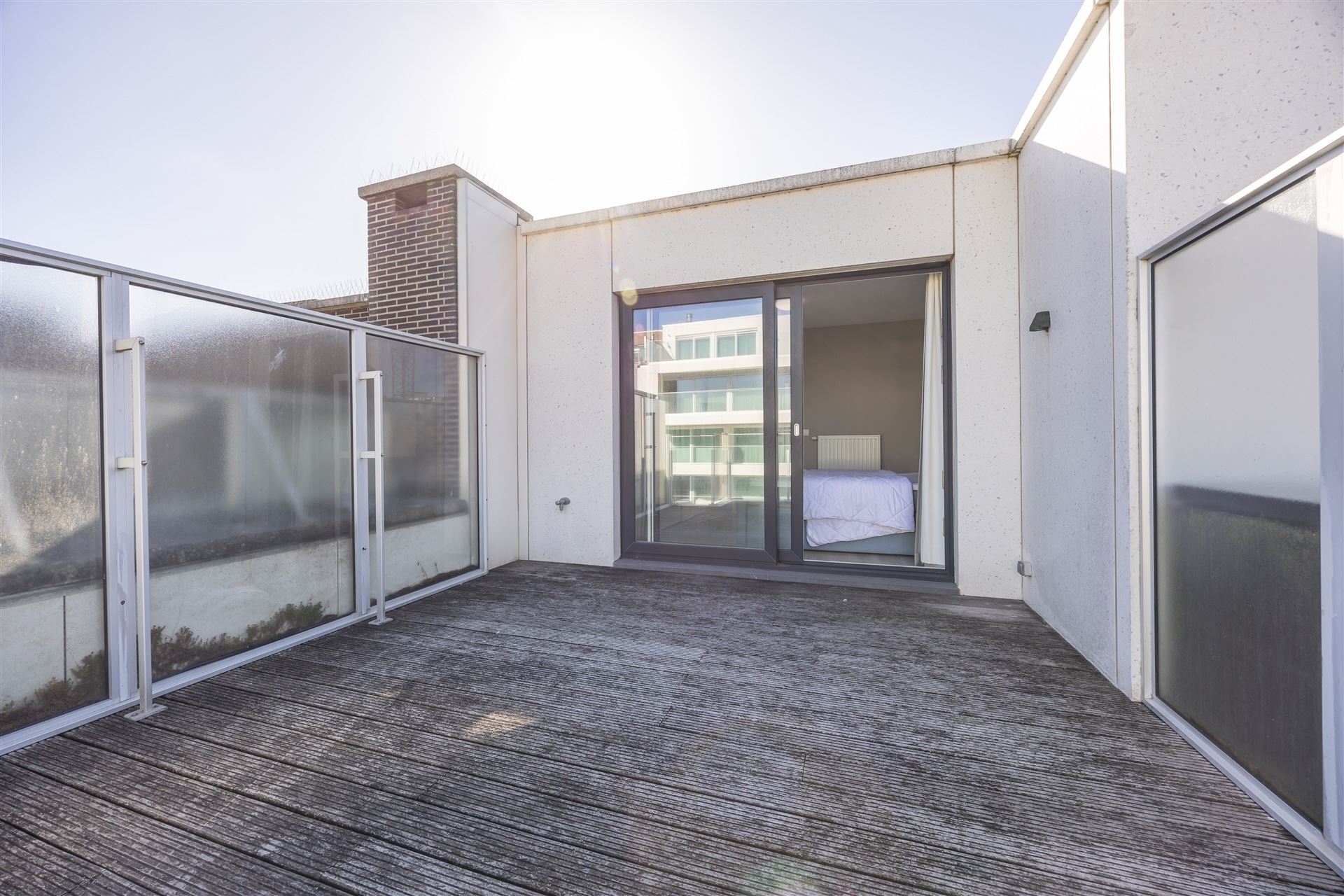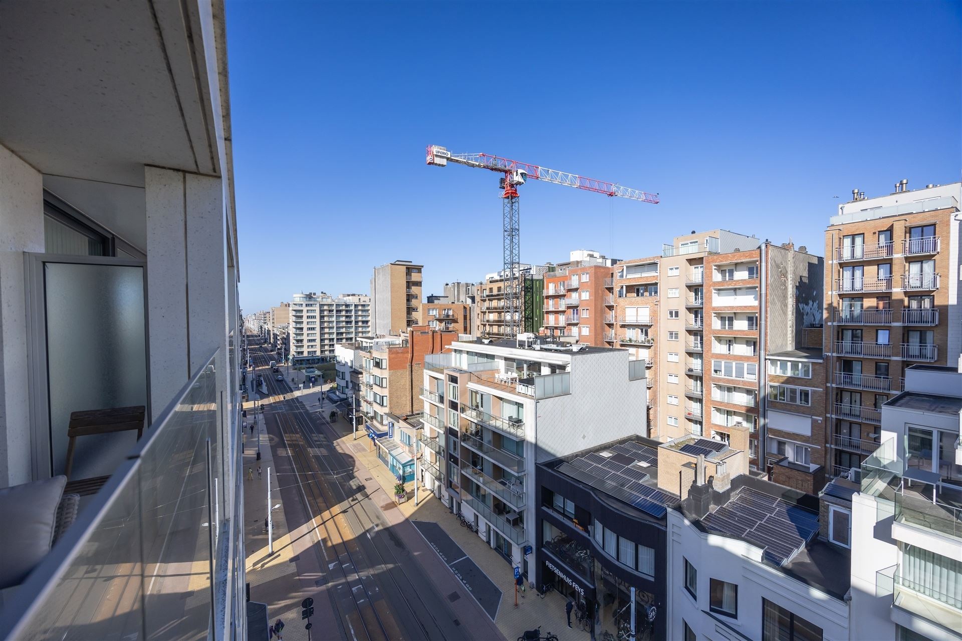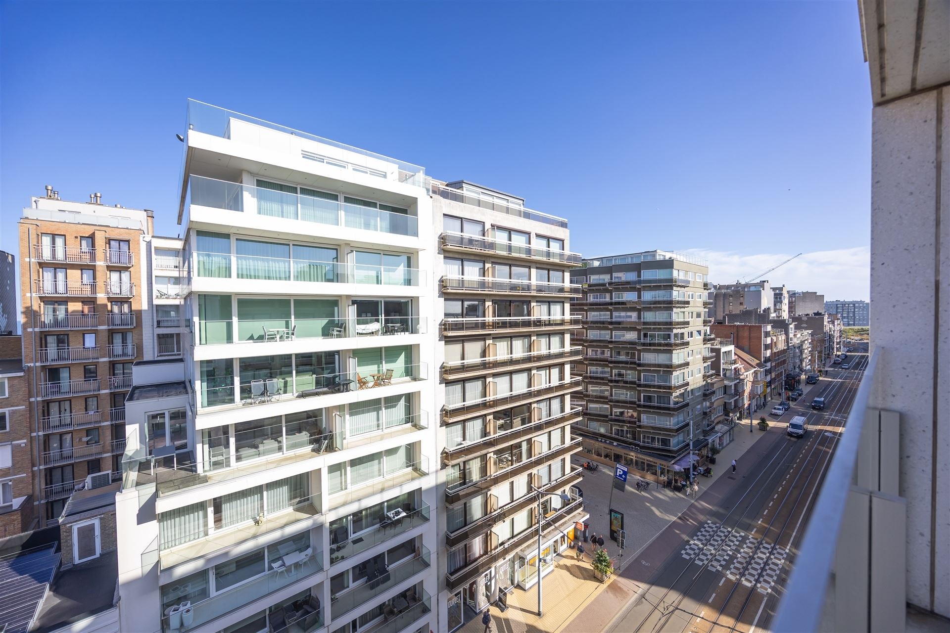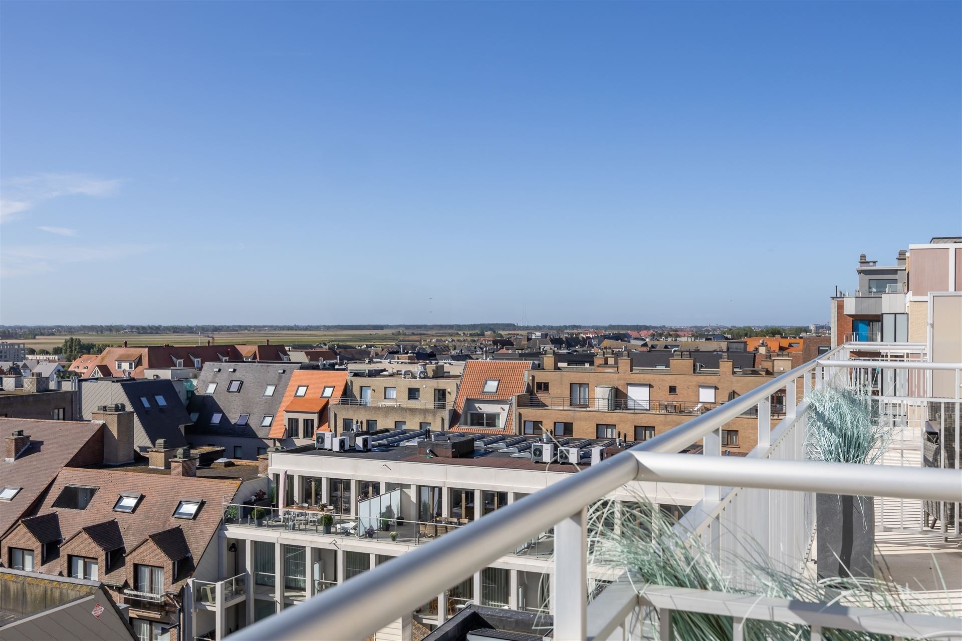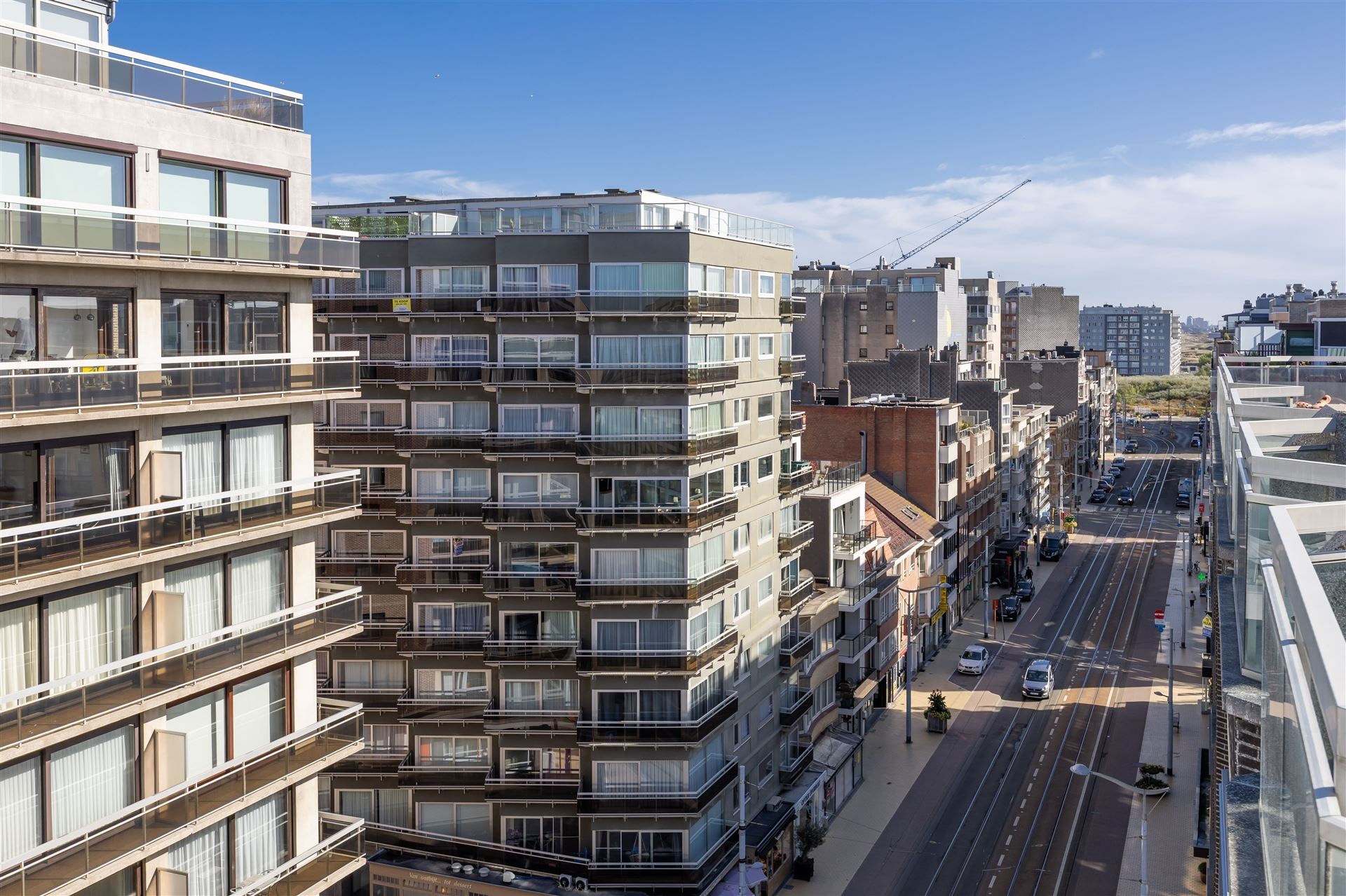 Prachtig duplex dakappartement gelegen op de 7e en 8e verdieping in recent gebouw ( bouwjaar 2015) midden in het winkelcentrum, vlakbij de Zeedijk, het nieuwe casino, gemeentelijk park. Ruim pand met een bewoonbare oppervlakte van 106m² + 46m² terras. Indeling : zeer ruime woonkamer met open volledig geïnstalleerde keuken, apart toilet, 2 slaapkamers, badkamer met dubbel lavabomeubel, ligbad met douchefunctie en 2e toilet. 4 terrassen waarvan 2 grenzend aan de woonkamer en keuken en dan nog 2 extra ruime dakterrassen grenzend aan beide slaapkamers. Inclusief private gelijkvloerse berging en gemeenschappelijke fietsenberging. Het appartement wordt volledig gemeubeld verkocht. Conforme elektrische installatie. Gunstig epc label A. Appartement met zeer veel lichtinval en mooi uitzicht op de Leopoldlaan en open zicht langs achterzijde op hinterland.