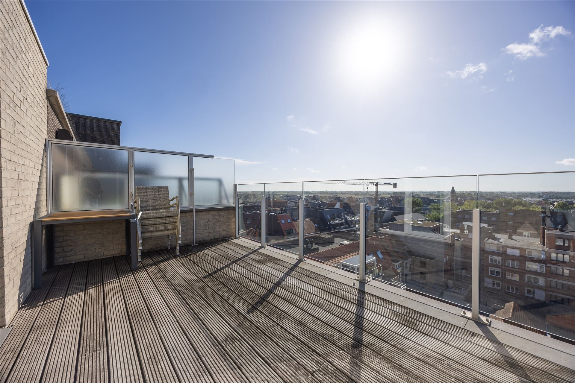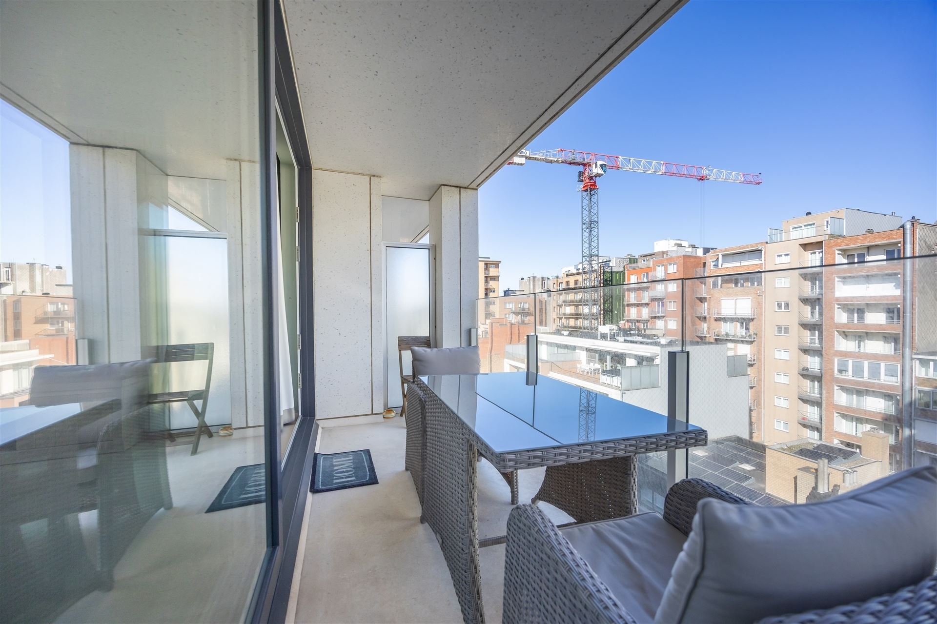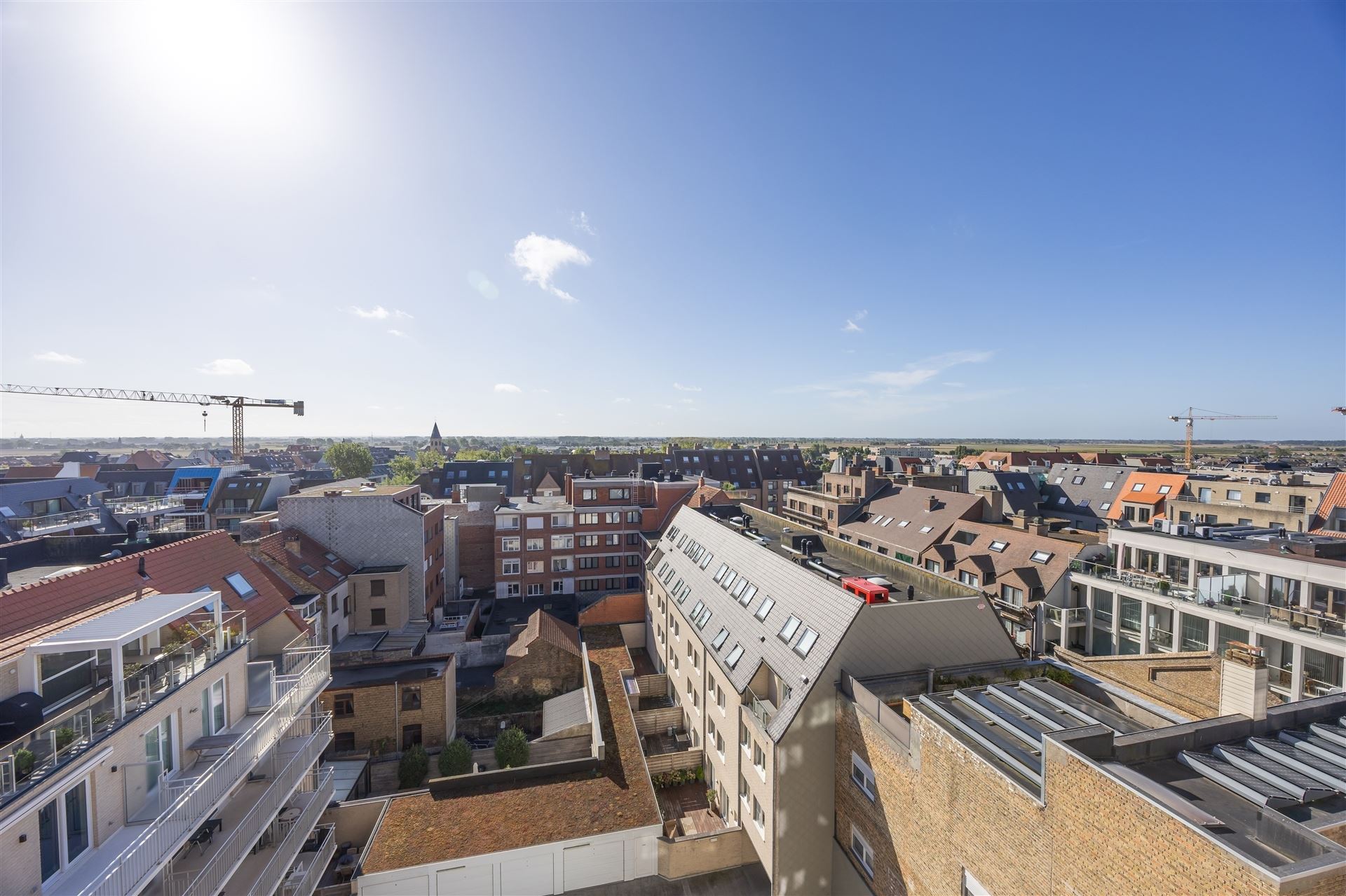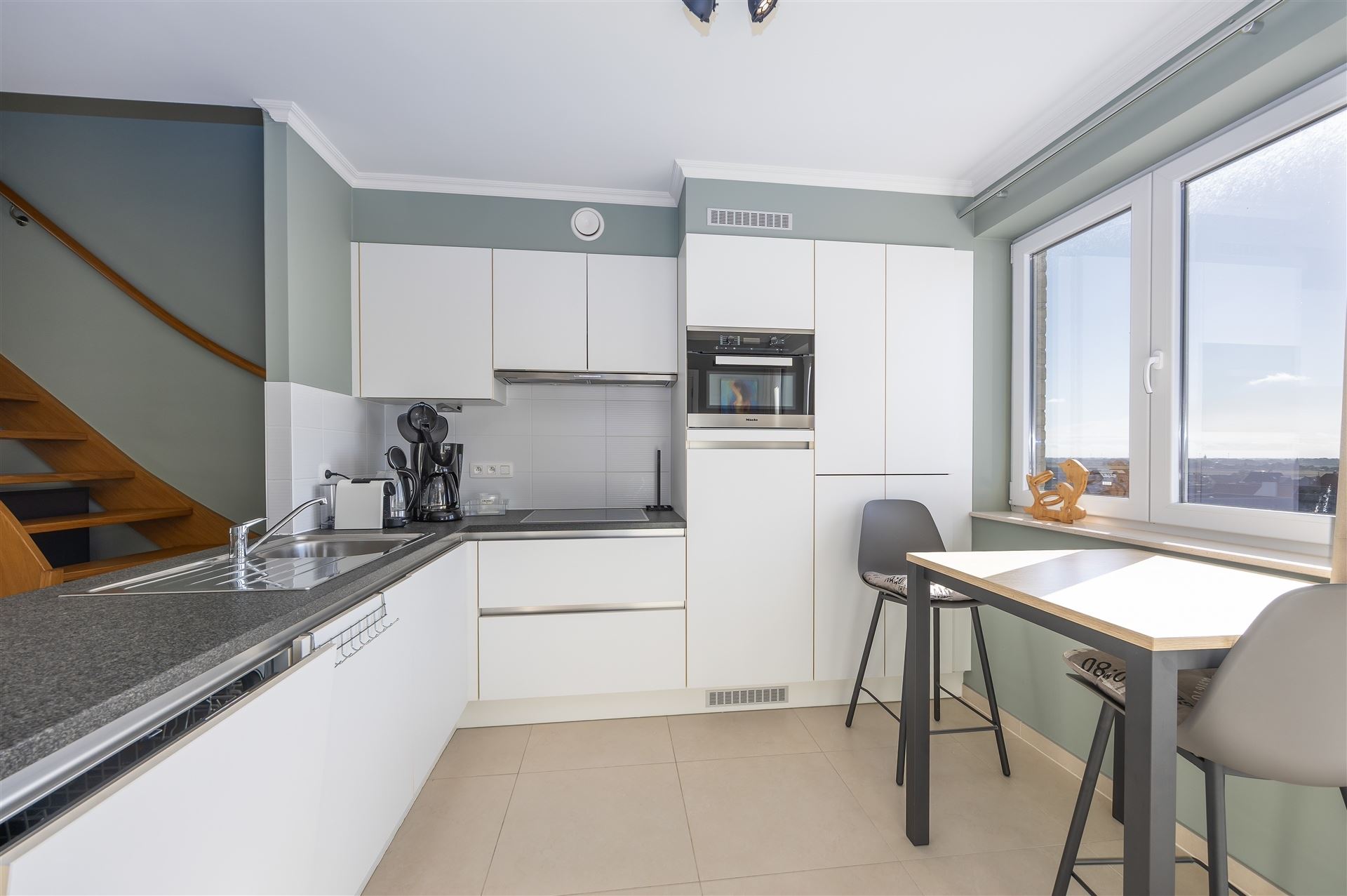 Prachtig duplex dakappartement gelegen op de 7e en 8e verdieping in recent gebouw ( bouwjaar 2015) midden in het winkelcentrum, vlakbij de Zeedijk, het nieuwe casino, gemeentelijk park. Ruim pand met een bewoonbare oppervlakte van 106m² + 46m² terras. Indeling : zeer ruime woonkamer met open volledig geïnstalleerde keuken, apart toilet, 2 slaapkamers, badkamer met dubbel lavabomeubel, ligbad met douchefunctie en 2e toilet. 4 terrassen waarvan 2 grenzend aan de woonkamer en keuken en dan nog 2 extra ruime dakterrassen grenzend aan beide slaapkamers. Inclusief private gelijkvloerse berging en gemeenschappelijke fietsenberging. Het appartement wordt volledig gemeubeld verkocht. Conforme elektrische installatie. Gunstig epc label A. Appartement met zeer veel lichtinval en mooi uitzicht op de Leopoldlaan en open zicht langs achterzijde op hinterland.