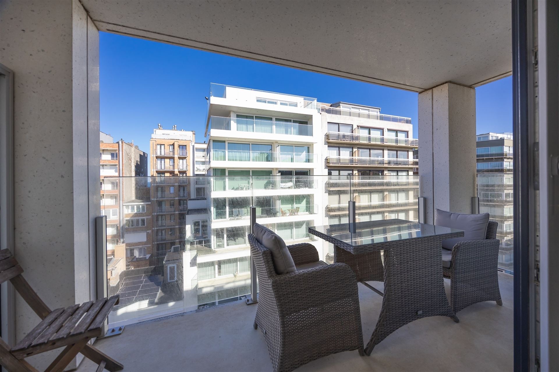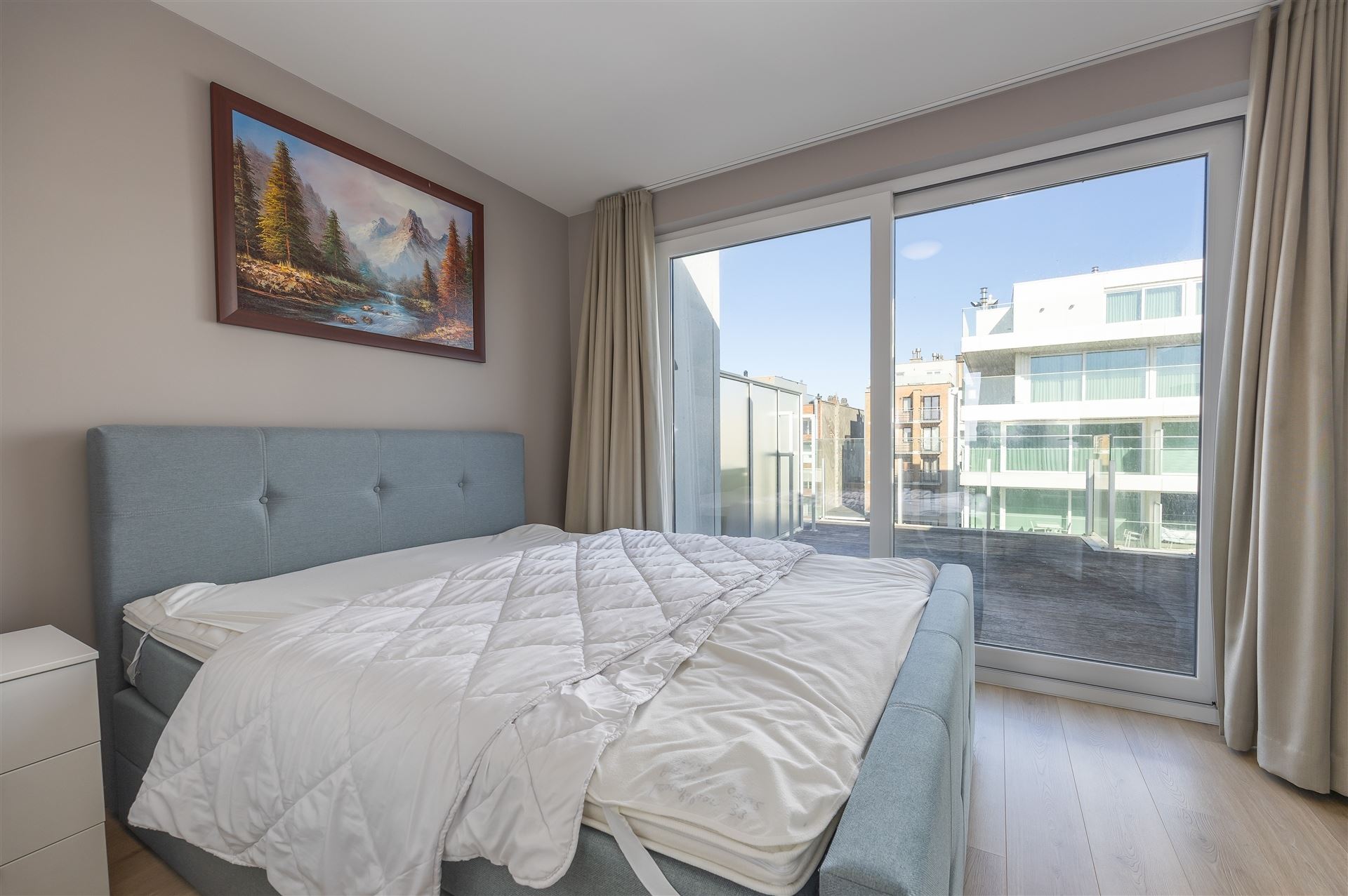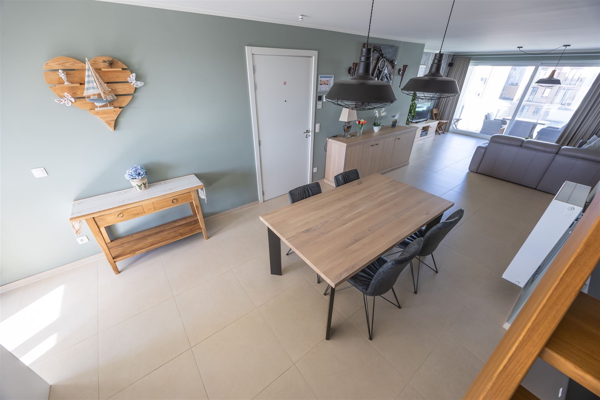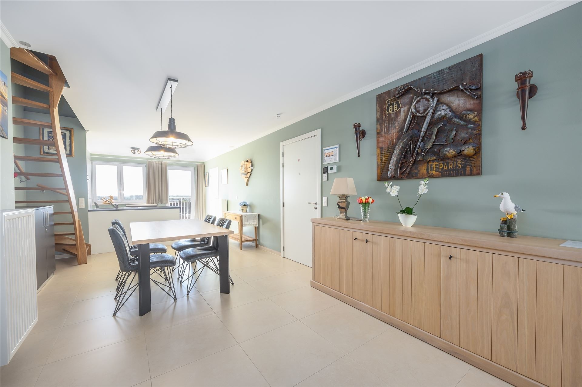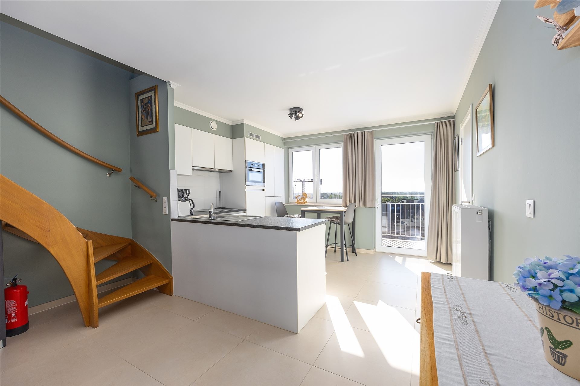Prachtig duplex dakappartement gelegen op de 7e en 8e verdieping in recent gebouw ( bouwjaar 2015) midden in het winkelcentrum, vlakbij de Zeedijk, het nieuwe casino, gemeentelijk park. Ruim pand met een bewoonbare oppervlakte van 106m² + 46m² terras. Indeling : zeer ruime woonkamer met open volledig geïnstalleerde keuken, apart toilet, 2 slaapkamers, badkamer met dubbel lavabomeubel, ligbad met douchefunctie en 2e toilet. 4 terrassen waarvan 2 grenzend aan de woonkamer en keuken en dan nog 2 extra ruime dakterrassen grenzend aan beide slaapkamers. Inclusief private gelijkvloerse berging en gemeenschappelijke fietsenberging. Het appartement wordt volledig gemeubeld verkocht. Conforme elektrische installatie. Gunstig epc label A. Appartement met zeer veel lichtinval en mooi uitzicht op de Leopoldlaan en open zicht langs achterzijde op hinterland.