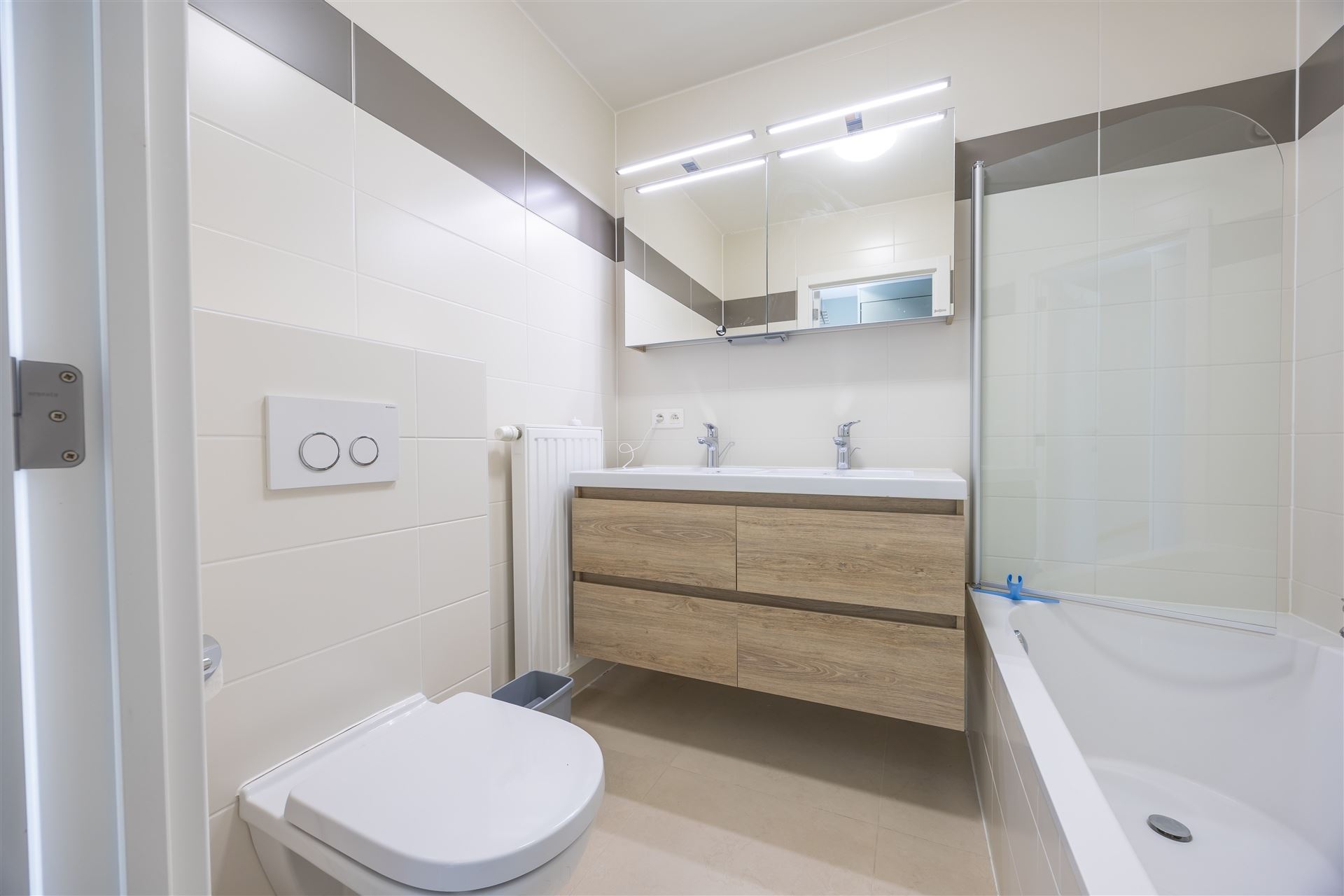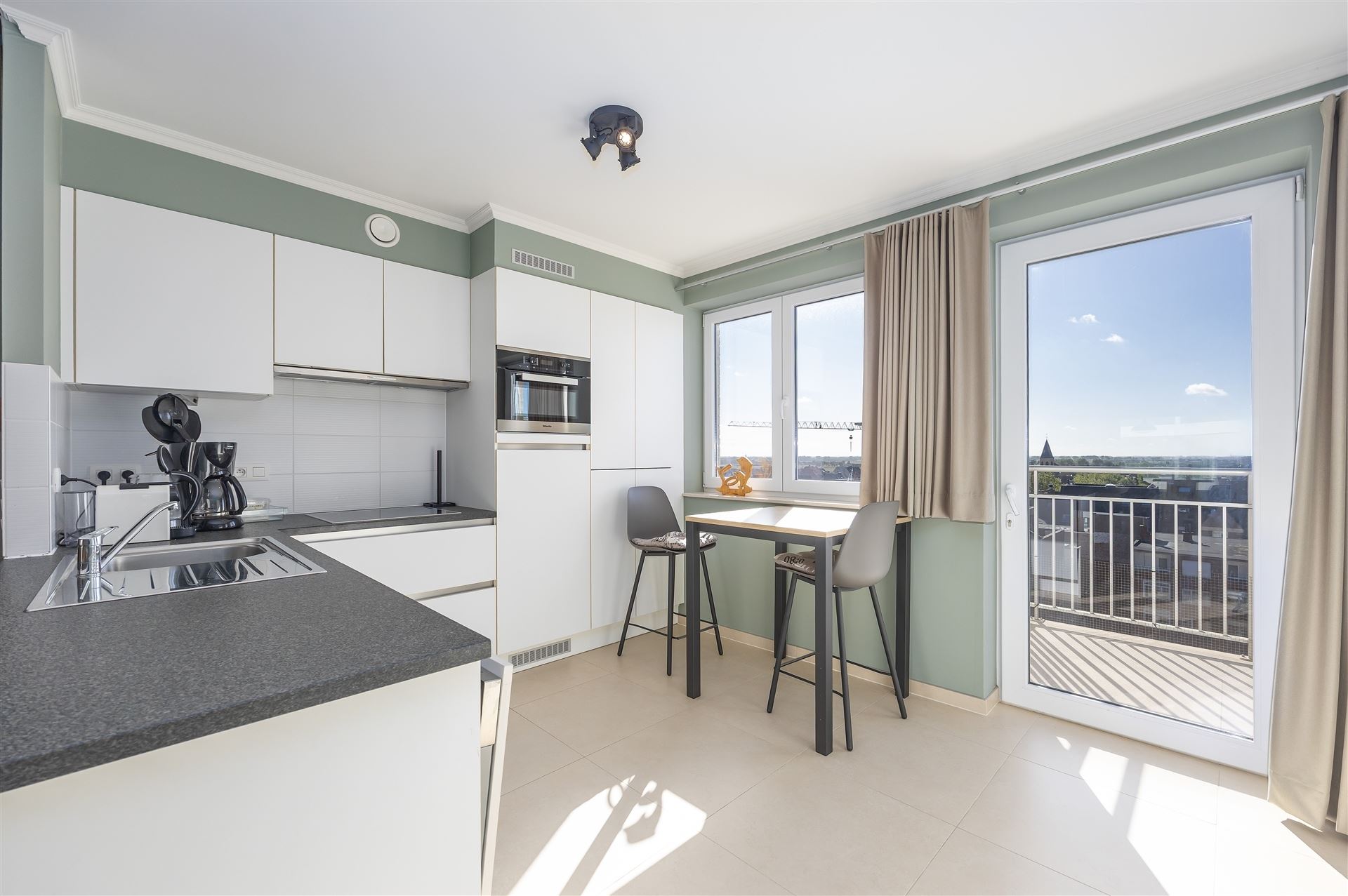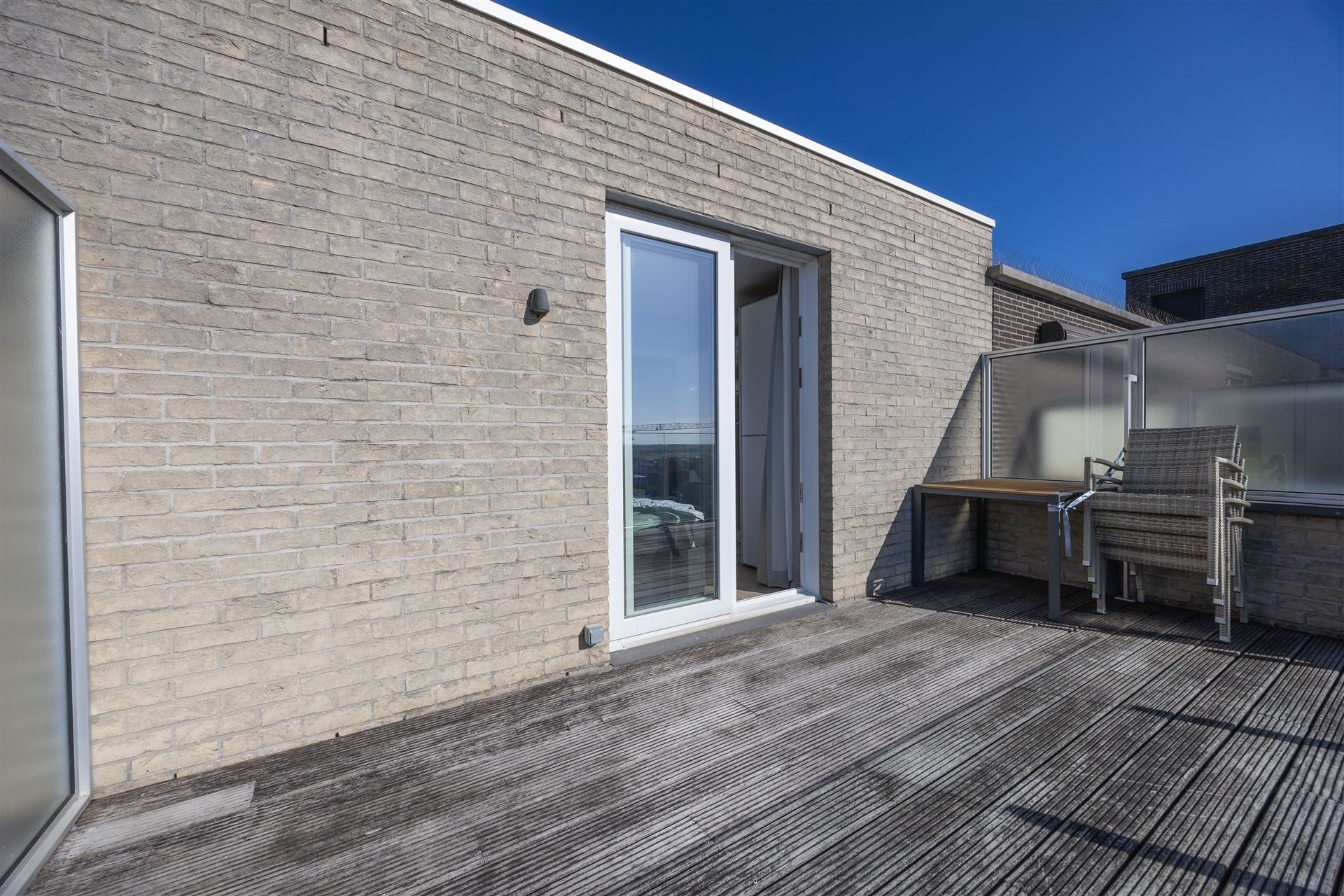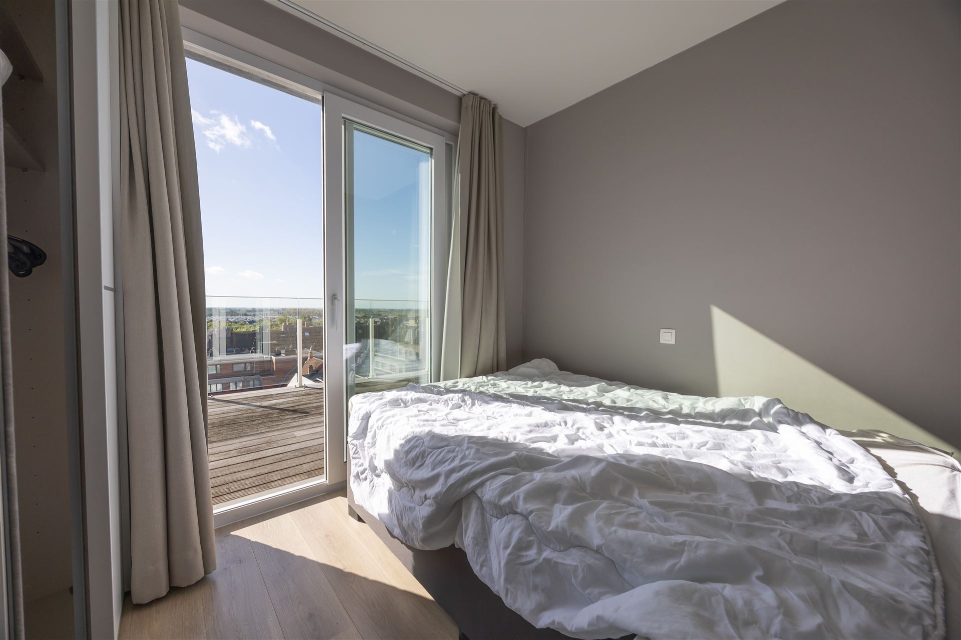 Prachtig duplex dakappartement gelegen op de 7e en 8e verdieping in recent gebouw ( bouwjaar 2015) midden in het winkelcentrum, vlakbij de Zeedijk, het nieuwe casino, gemeentelijk park. Ruim pand met een bewoonbare oppervlakte van 106m² + 46m² terras. Indeling : zeer ruime woonkamer met open volledig geïnstalleerde keuken, apart toilet, 2 slaapkamers, badkamer met dubbel lavabomeubel, ligbad met douchefunctie en 2e toilet. 4 terrassen waarvan 2 grenzend aan de woonkamer en keuken en dan nog 2 extra ruime dakterrassen grenzend aan beide slaapkamers. Inclusief private gelijkvloerse berging en gemeenschappelijke fietsenberging. Het appartement wordt volledig gemeubeld verkocht. Conforme elektrische installatie. Gunstig epc label A. Appartement met zeer veel lichtinval en mooi uitzicht op de Leopoldlaan en open zicht langs achterzijde op hinterland.