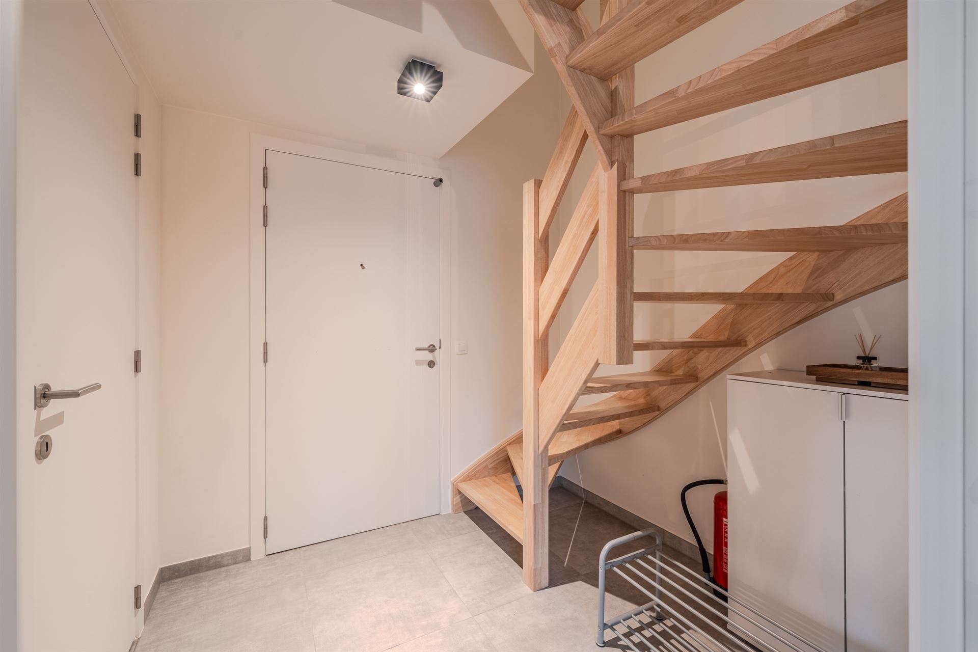 Op de bovenverdieping vind je twee comfortabele slaapkamers met aangename lichtinval en praktische bergruimte. De badkamer is strak afgewerkt en uitgerust met een inloopdouche en een zwevend wastafelmeubel. Een praktische berging onder de trap biedt extra opbergruimte.