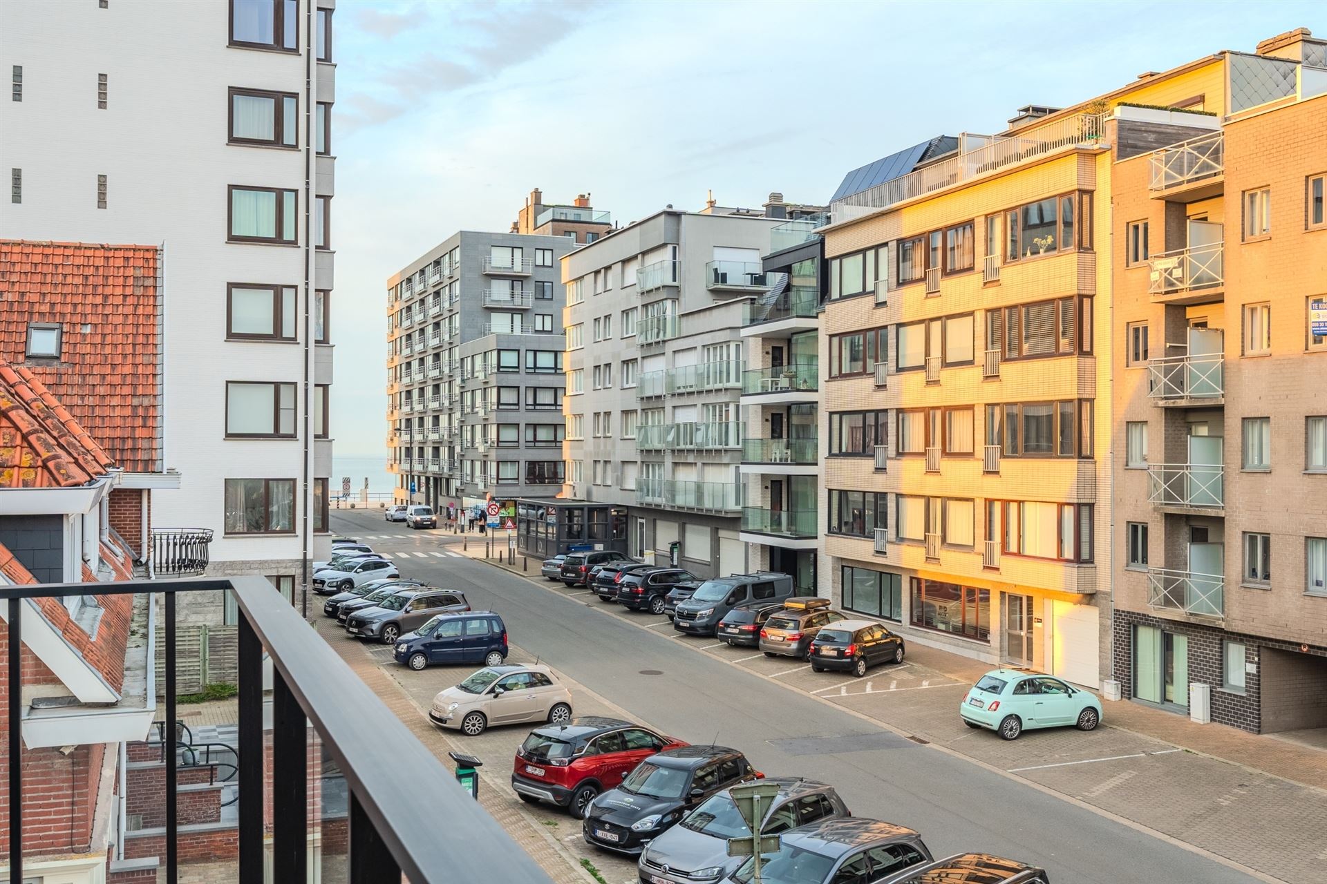 Instapklaar appartement van circa 90 m² in Middelkerke, gelegen in een modern gebouw. De leefruimte bevindt zich op het hoofdverdieping en combineert een ruime zithoek met eetplaats en een trendy keuken met eiland en inbouwapparatuur (oven, kookplaat, afwas). Grote raampartijen zorgen voor veel daglicht en geven toegang tot een ruim balkon met glazen balustrade en uitzicht op de straat en de omliggende gebouwen.