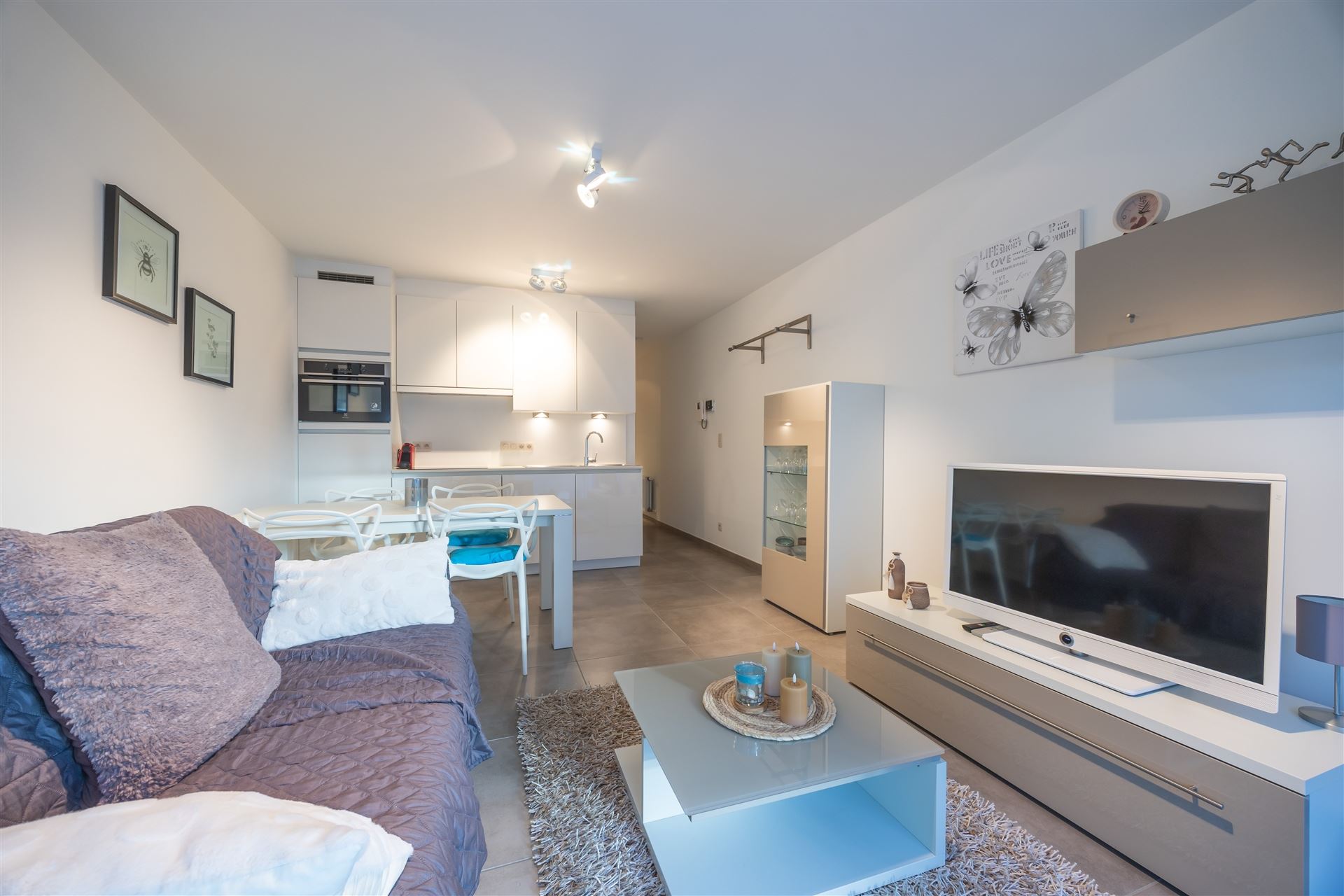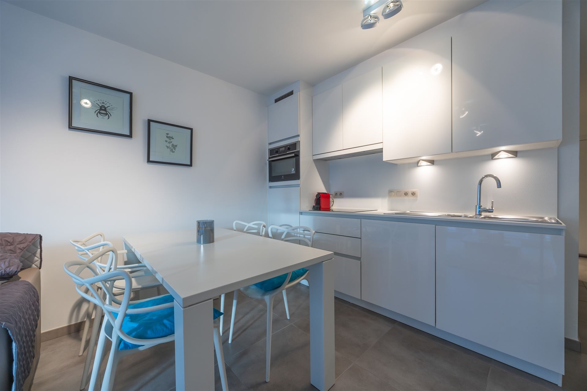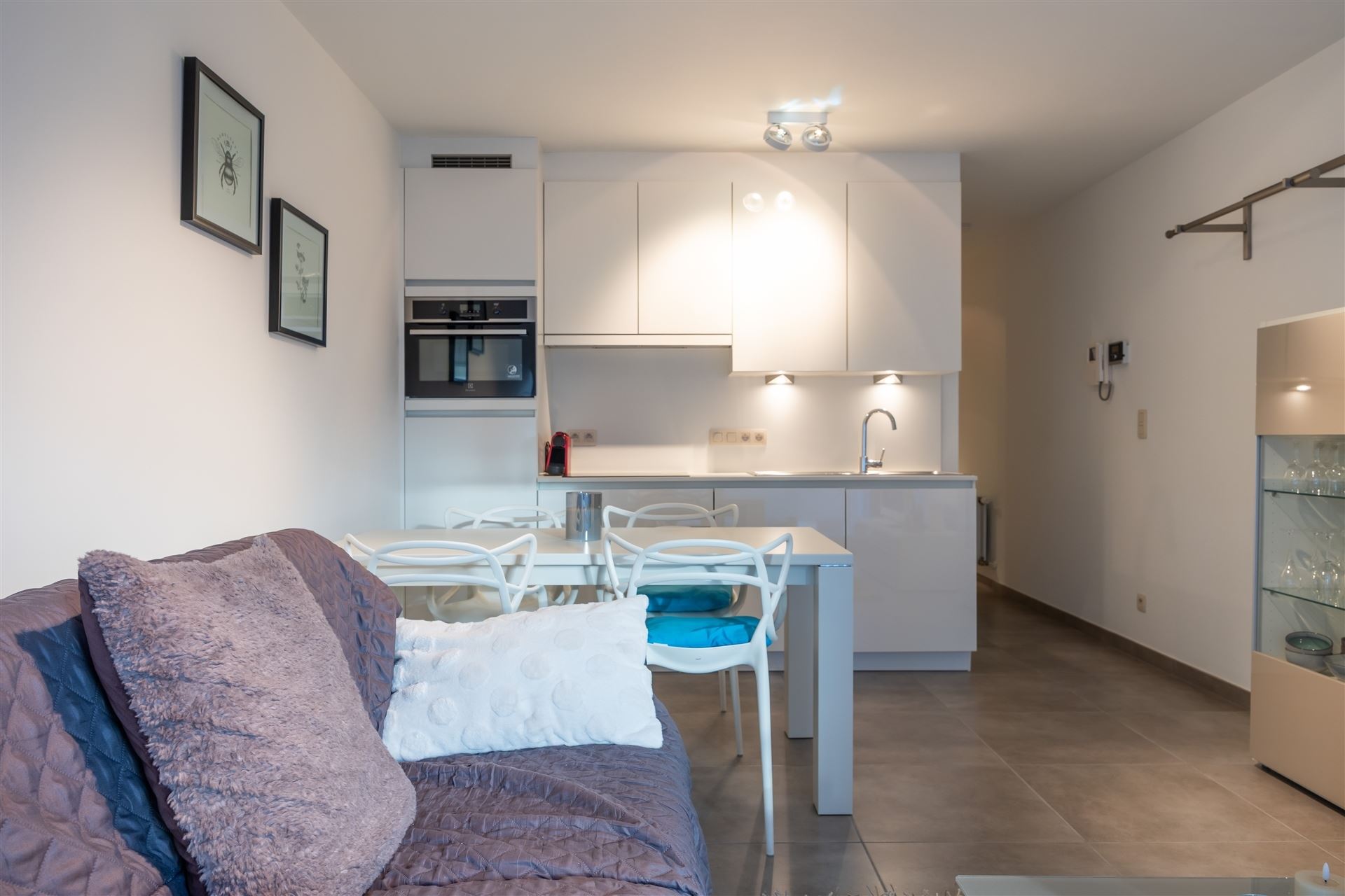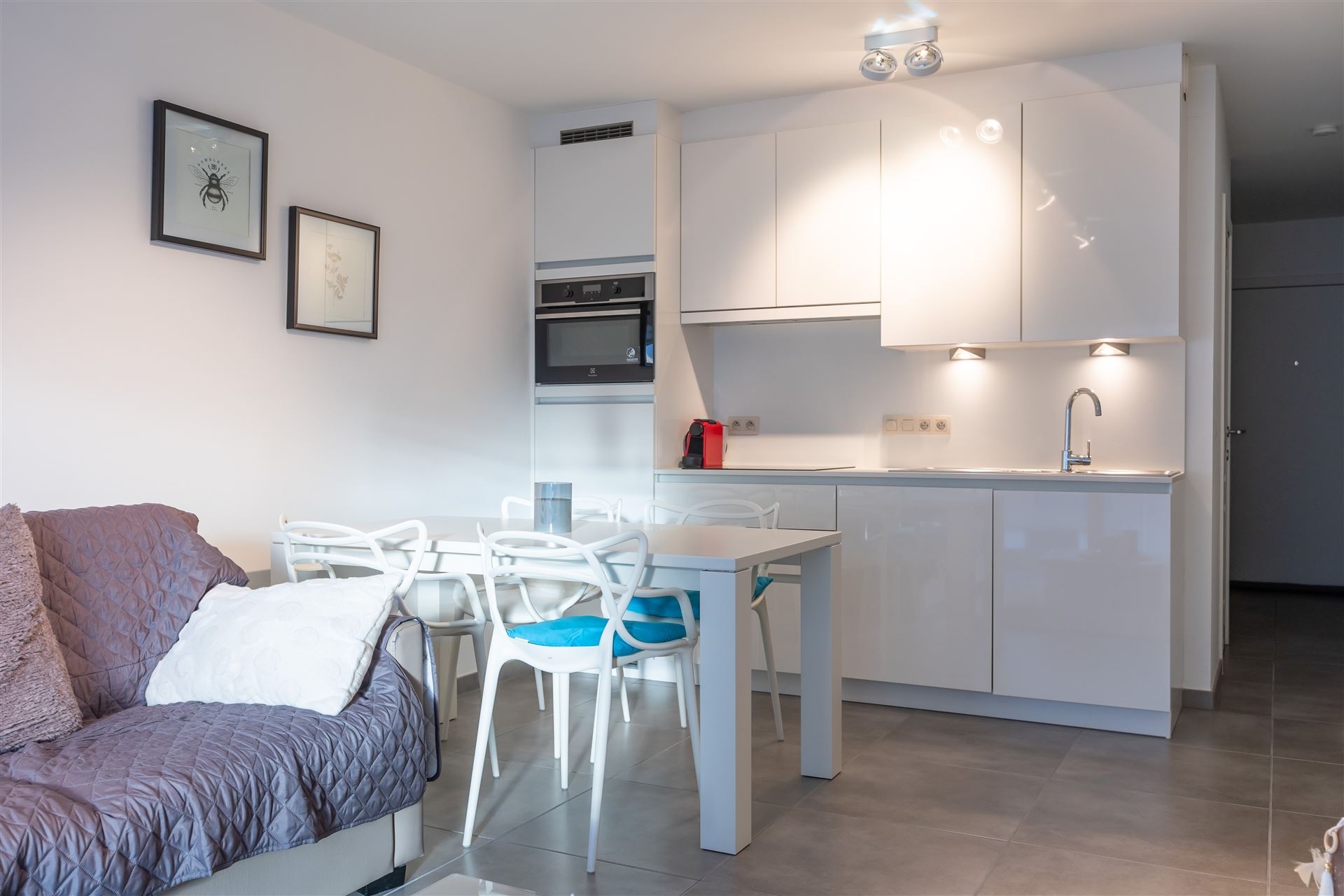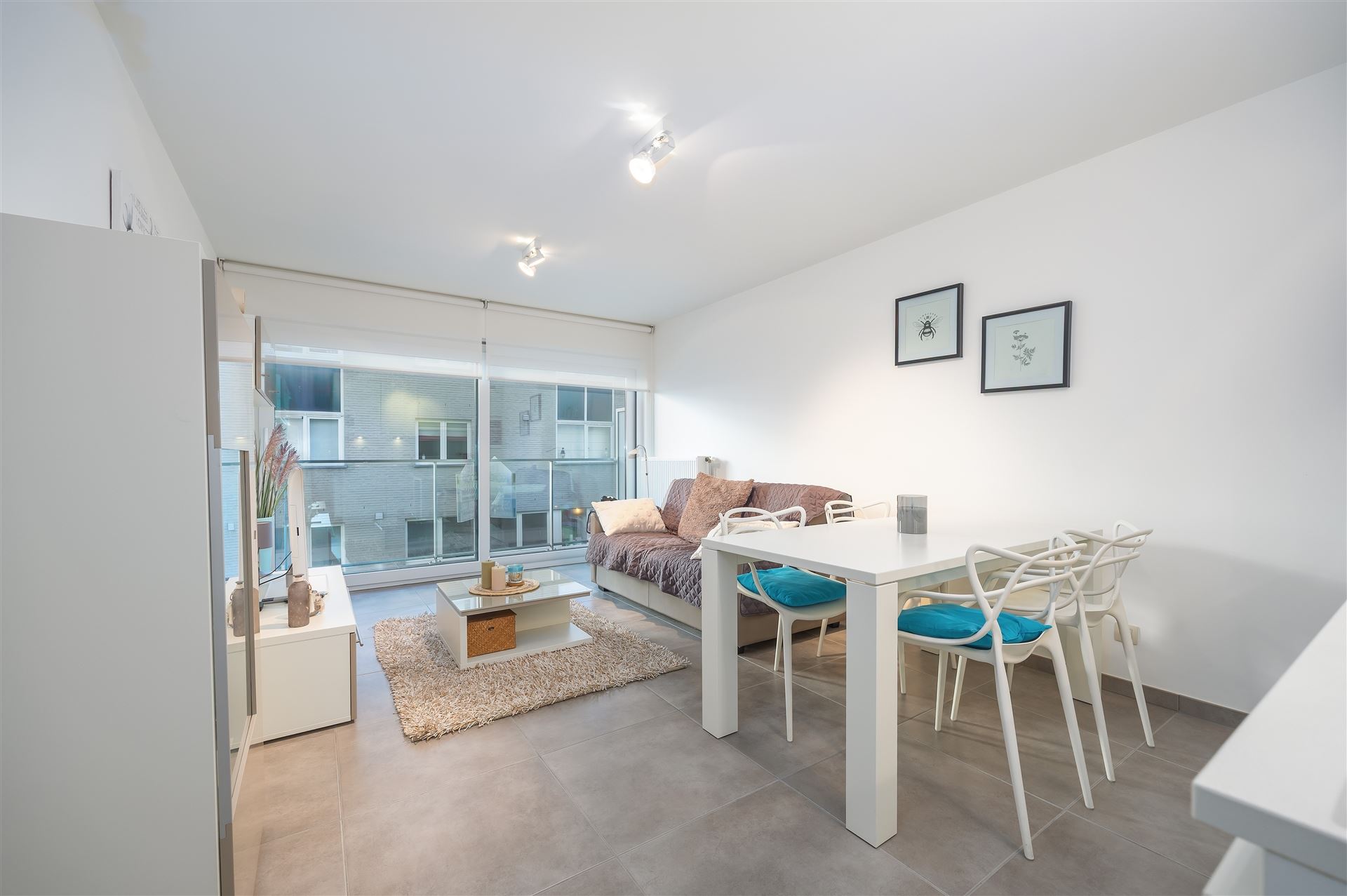 Prachtig ingerichte studio met slaaphoek in zeer recent gebouw (bouwjaar 2014) op centrale ligging vlakbij de Zeedijk. Indeling : ruime woonkamer met open keuken en mooi zuidwest-gericht terras, badkamer met inloopdouche en een ruime slaaphoek met ingebouwde kasten. Er is alsook een private berging in de gang voorzien voor aansluiting wasmachine/droogkast (net voor de inkomdeur van het appartement). De studio, die in zo goed als nieuwstaat is, wordt volledig gemeubeld verkocht. Conforme elektrische keuring. Zeer gunstige energiescore : A LABEL. Gemeenschappelijke fietsenberging in het gebouw. Mogelijkheid tot aankoop garage in de res. Eclips, IJzerlaan 22.