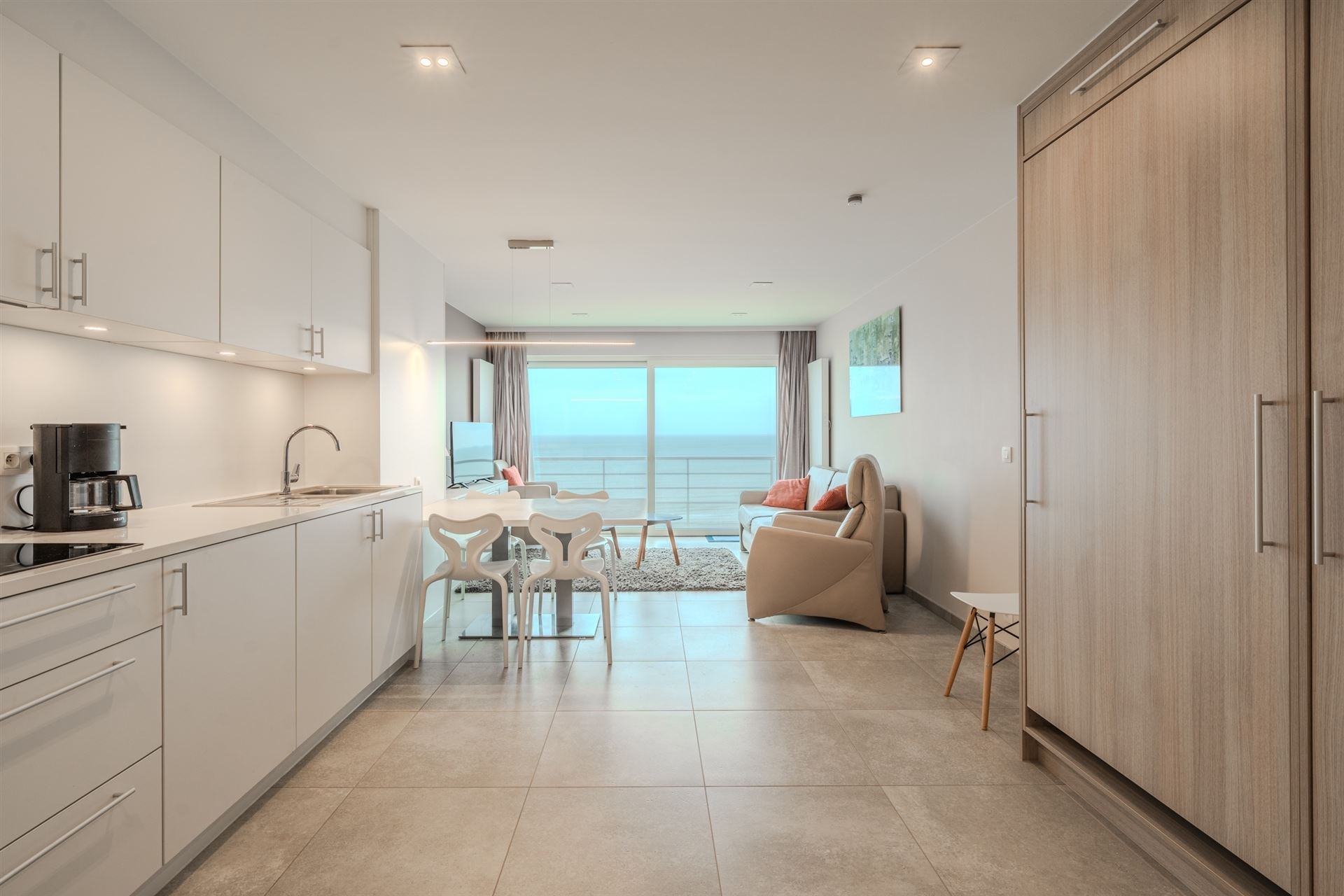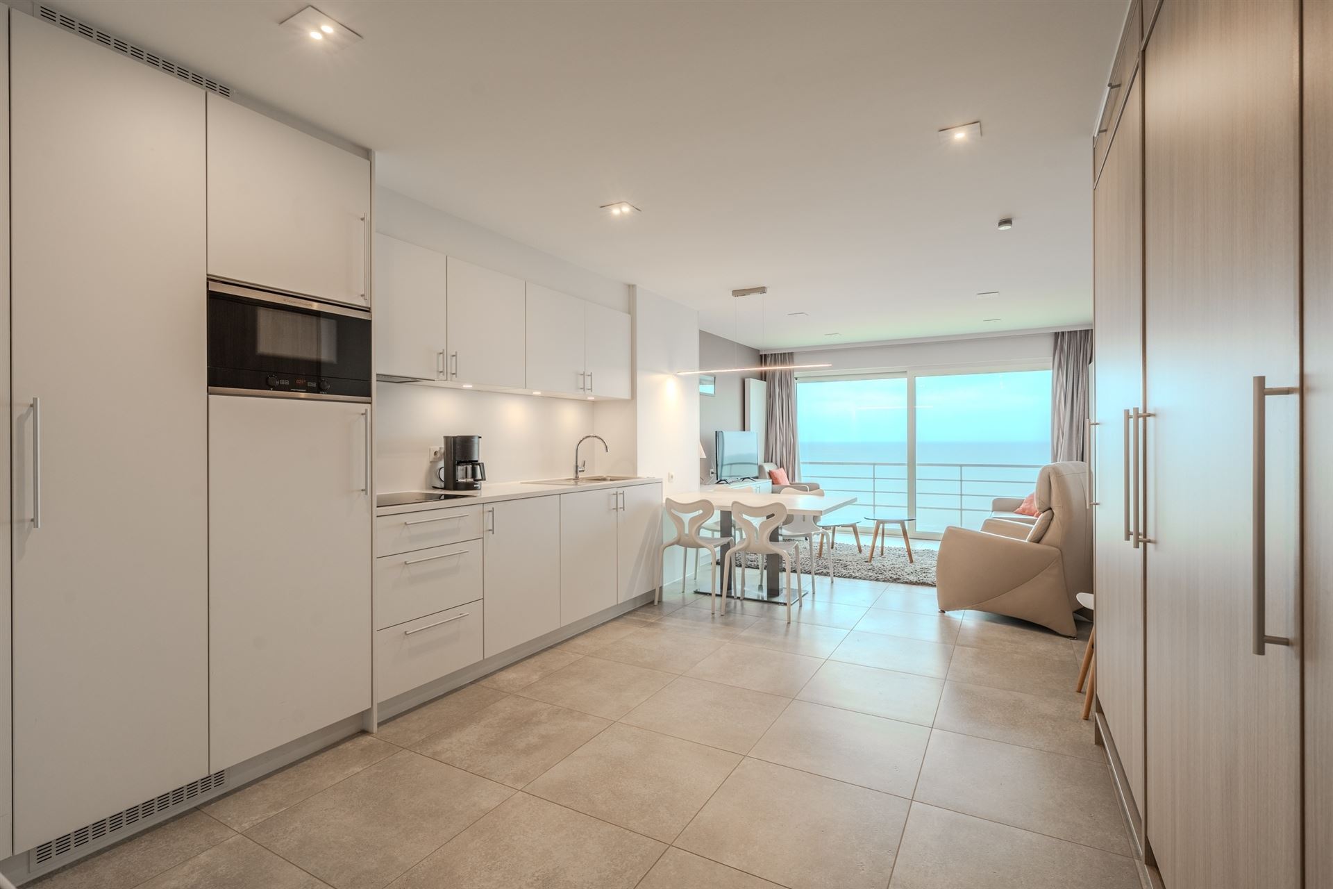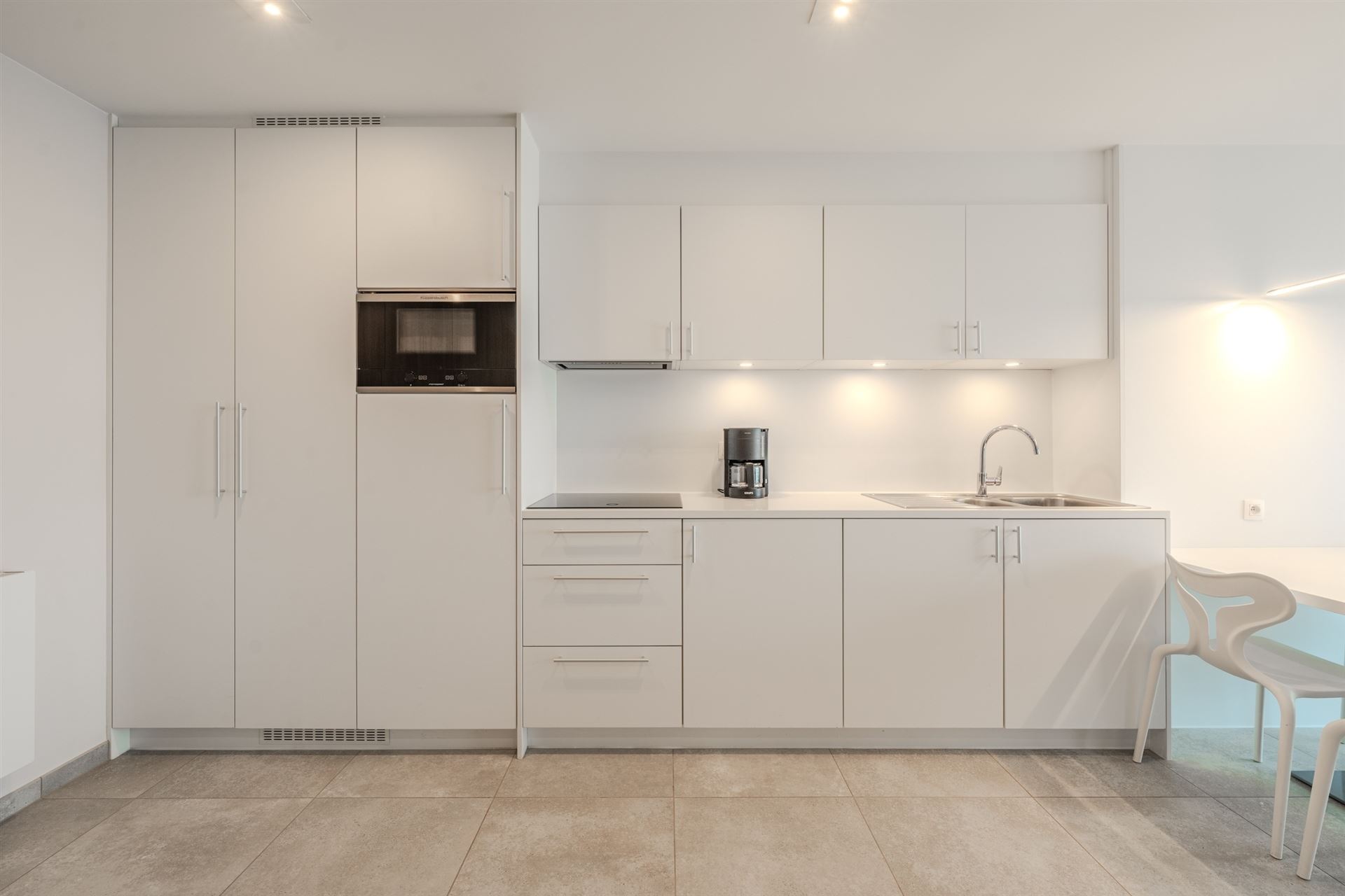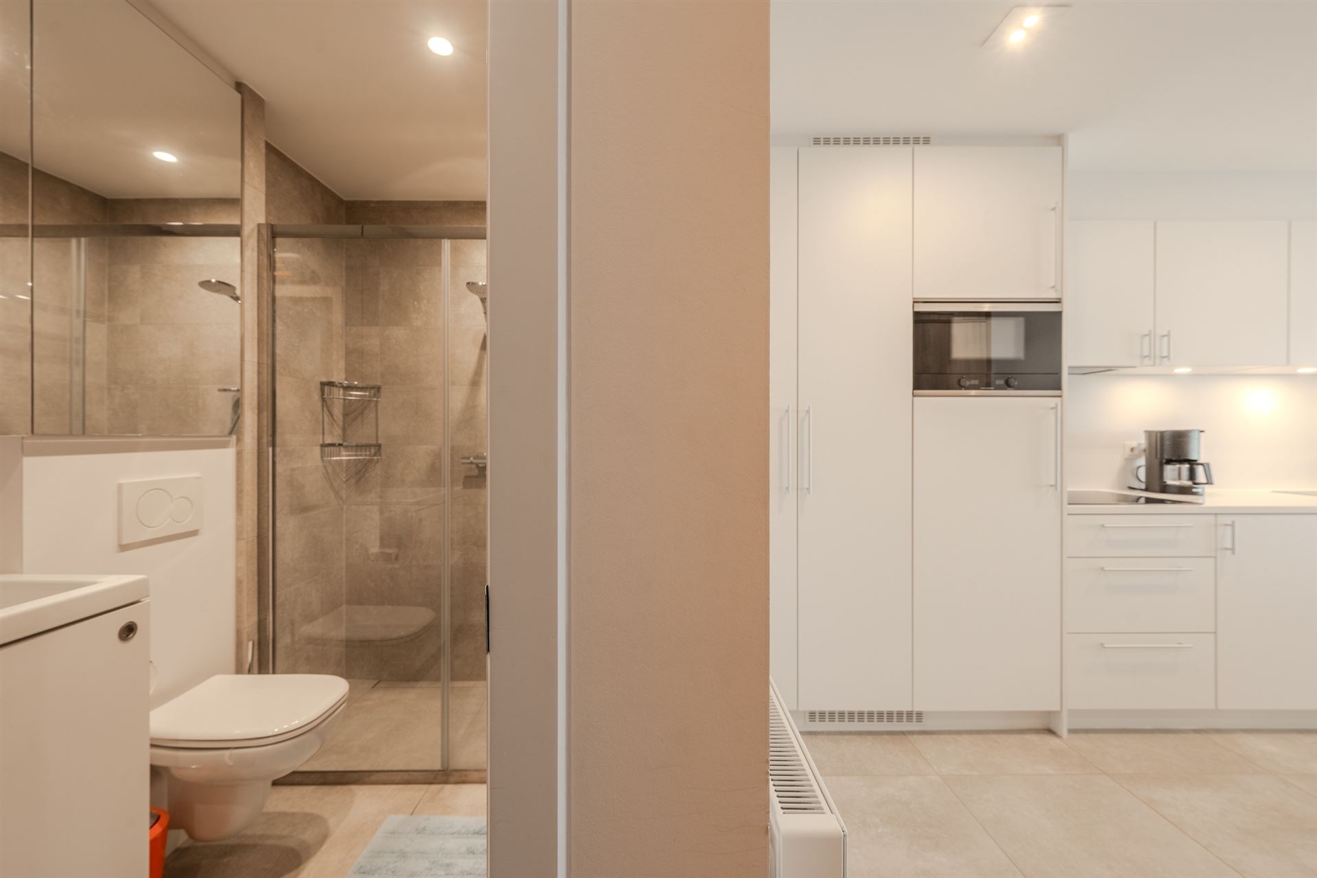 De studio beschikt over een open, lichte plattegrond met naadloze verbinding tussen woon-, eet- en keukenzone. De ultramoderne keuken is voorzien van kwalitatieve inbouwapparatuur en aanrechtblad met alles wat u nodig heeft voor comfortabel wonen. Verdeeld over meerdere kamers vindt u een volledig uitgevoerde badkamer met luxe douche en modern sanitair.
