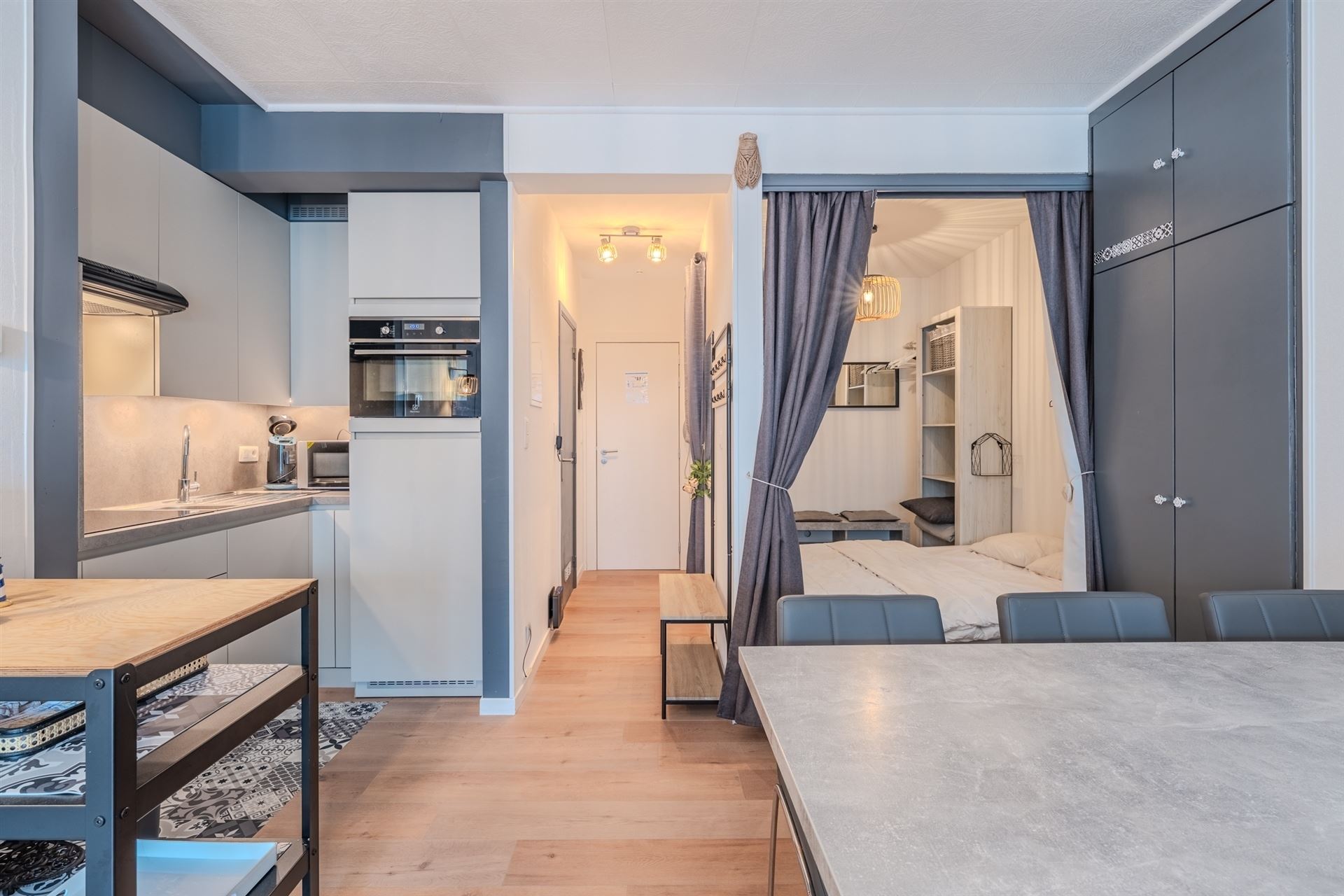 Deze recent gerenoveerde en volledig gemeubelde studio geniet dankzij de hoge ligging van veel lichtinval en een mooi open zicht. De renovatie werd uitgevoerd met oog voor detail en resulteert in een moderne, frisse en verzorgde afwerking.