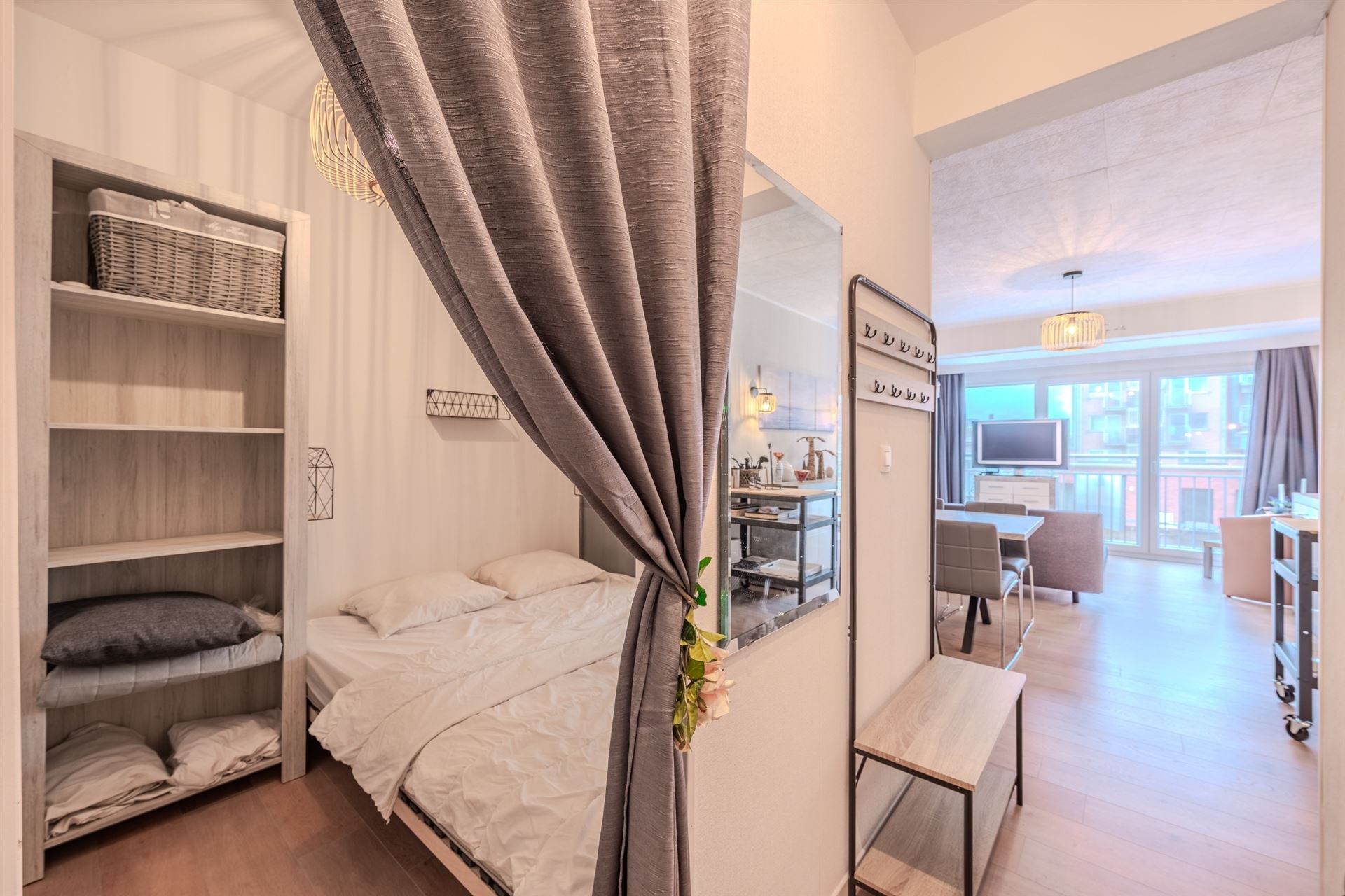 Te koop: instapklare, gemeubelde studio op de zesde verdieping in het centrum van Middelkerke.
