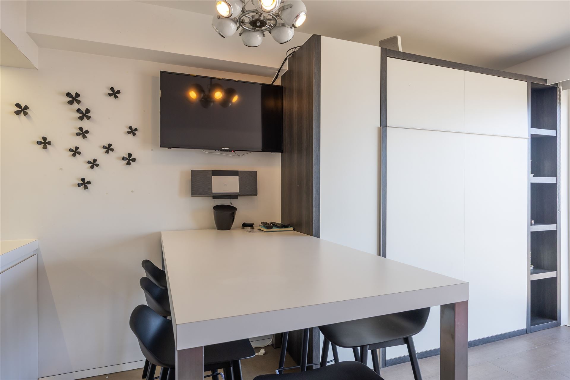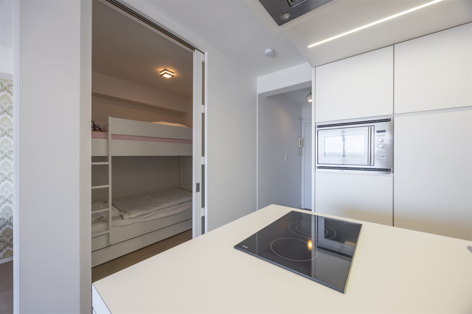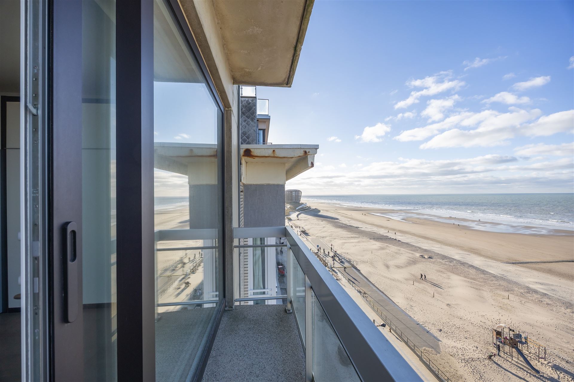 Ruime, gerenoveerde studio met frontaal zeezicht met als indeling : woonkamer voorzien van groot wandmeubel met tweepersoonsbed, ruime open keuken met eiland, aparte slaaphoek met stapelbed, badkamer met lavabomeubel, douche en toilet, terras. De studio wordt volledig gemeubeld verkocht en is overal voorzien van maatwerk. Conforme elektrische installatie. De studio werd steeds verhuurd als vakantieverblijf waardoor alles ook conform de huidige wetgeving is. Mooi pand op absolute topligging op de Zeedijk vlakbij het winkelcentrum en nieuwe Casino.
