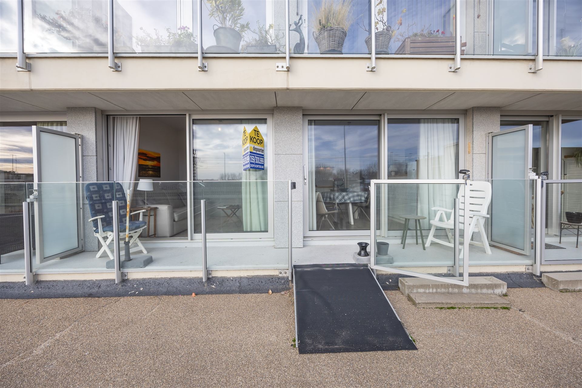 Zuidgerichte studio met een zonnig terras, open keuken, ruime zitruimte, berging en badkamer met douche. Er is tevens een grote kelderberging voor extra opbergruimte.