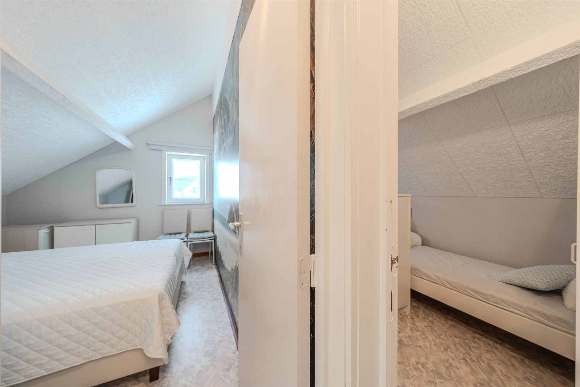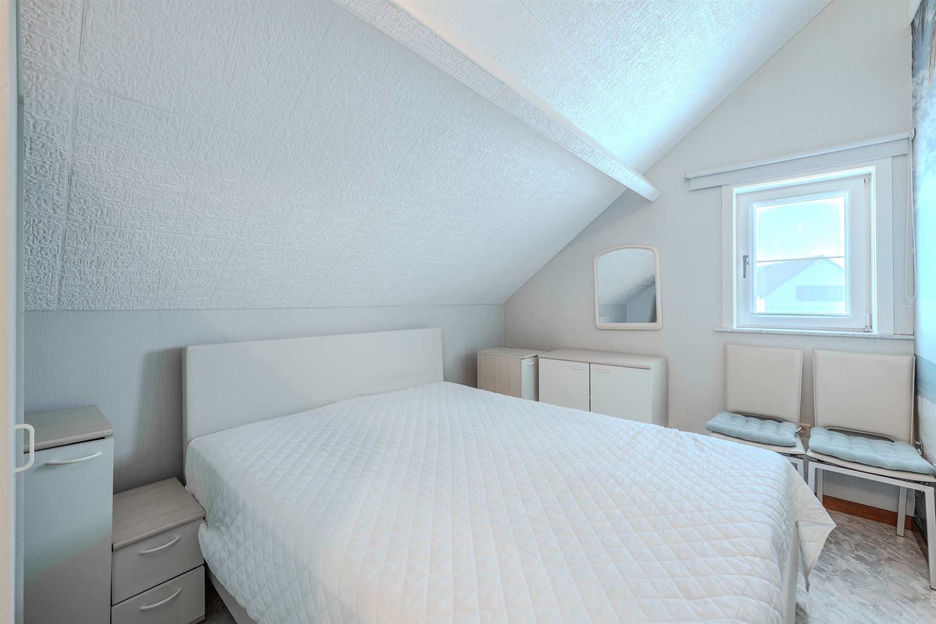 De woning beschikt over een volledig uitgeruste badkamer met douche en bad, voorzien van modern sanitair en spiegel. Doorheen het huis zijn er 2slaapkamers, waaronder een ruime slaapkamer met een dubbel bed en een 2de slaapkamer waar er momenteel 3 enkele bedden staan, ideaal voor gezinsvakantie of gasten.