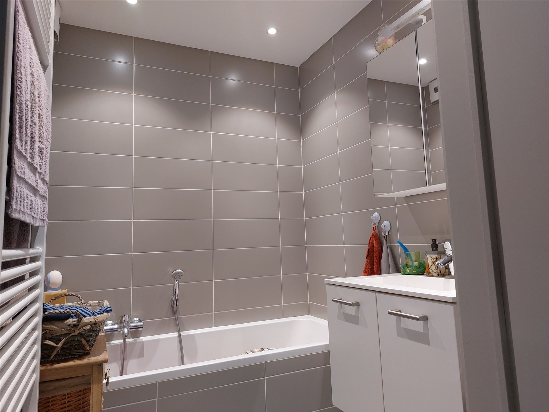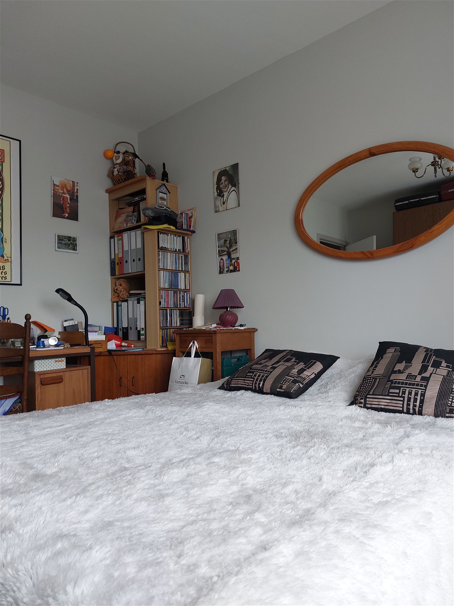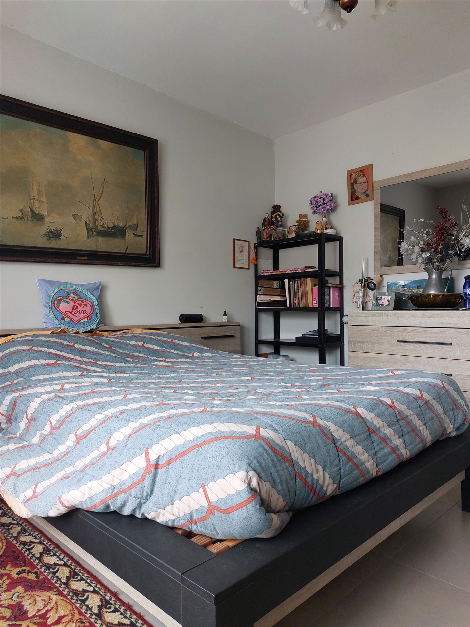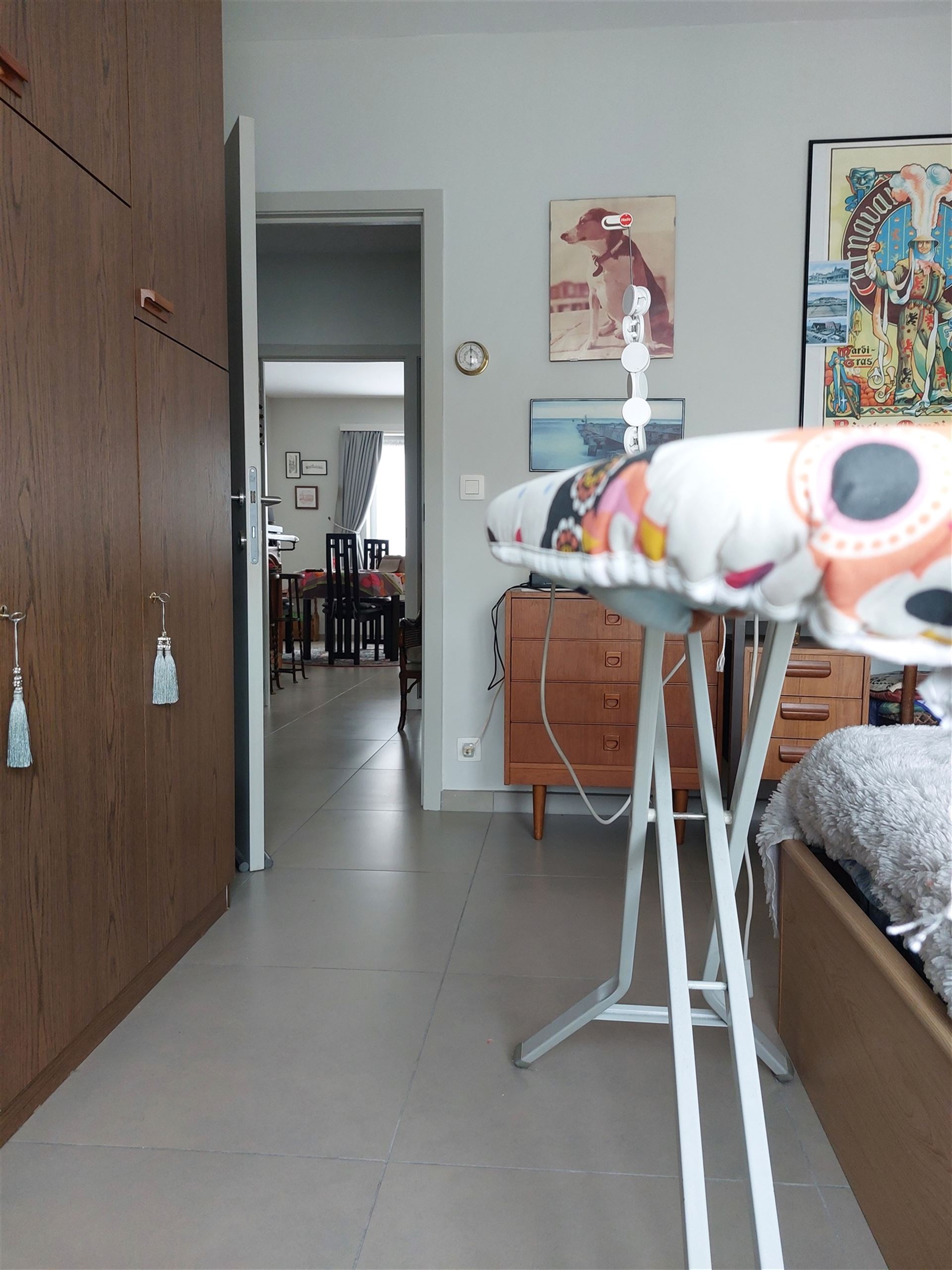 Ruim, ongemeubeld appartement op de eerste verdieping in klein gebouw zonder lift ( slechts 2 appartementen ). Indeling : woonkamer met vernieuwde open keuken, vernieuwde badkamer met ligbad en lavabomeubel, apart toilet, 2 ruime slaapkamers, grote gelijkvloerse bergruimte. Maandelijkse huurprijs : 750 €. Beschikbaar vanaf begin januari 2026. Bezoek op afspraak.