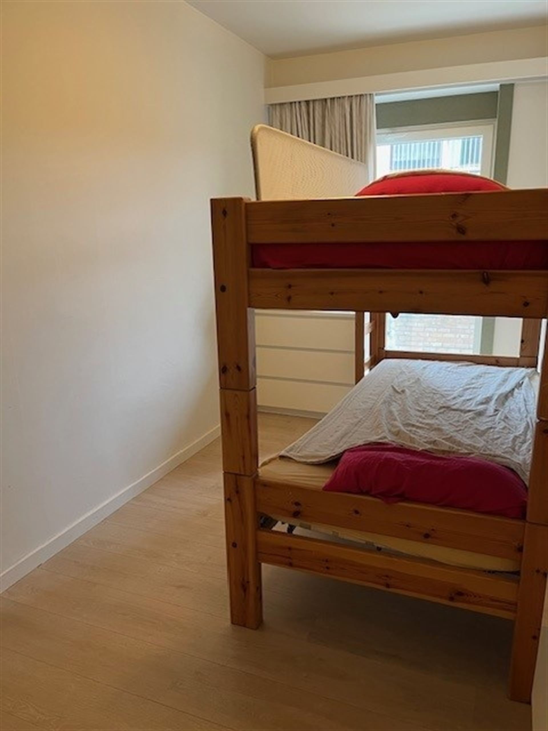 Gemeubeld appartement met frontaal zeezicht. Bestaat uit inkom, woonkamer met open keuken en terras met zeezicht. Badkamer met douche, apart toilet. 2 slaapkamers waarvan 1 met dubbel bed, 2de slaapkamer met stapelbed. Achteraan ook terras. Dit appartement kan enkel gehuurd worden als tweede verblijf. Mogelijkheid tot huren van een garage in de omgeving.
