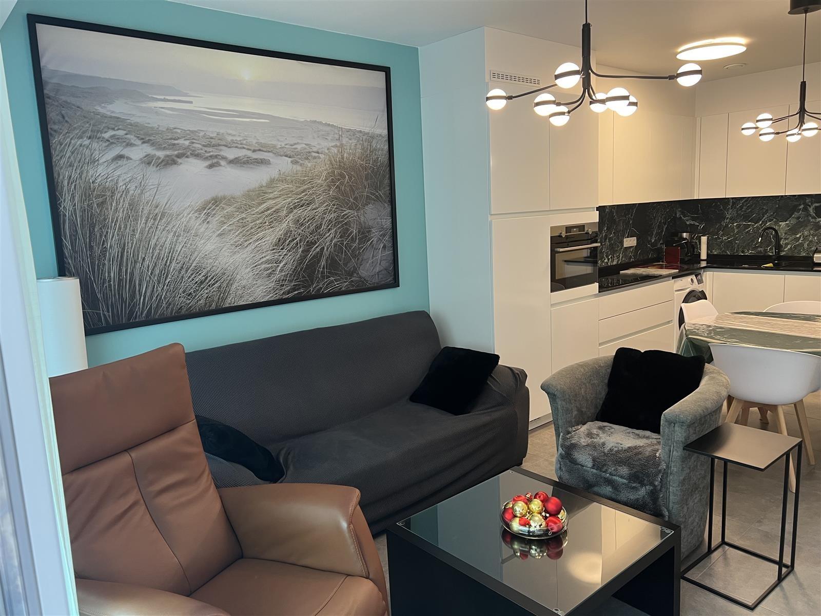 Het appartement beschikt over een woonkamer met volledig uitgeruste keuken (inductie vuur, combi-oven) Er zijn 2 slaapkamers, 1 badkamer (douche en lavabo) en apart toilet, 1 berging met wasmachine en droogkast.